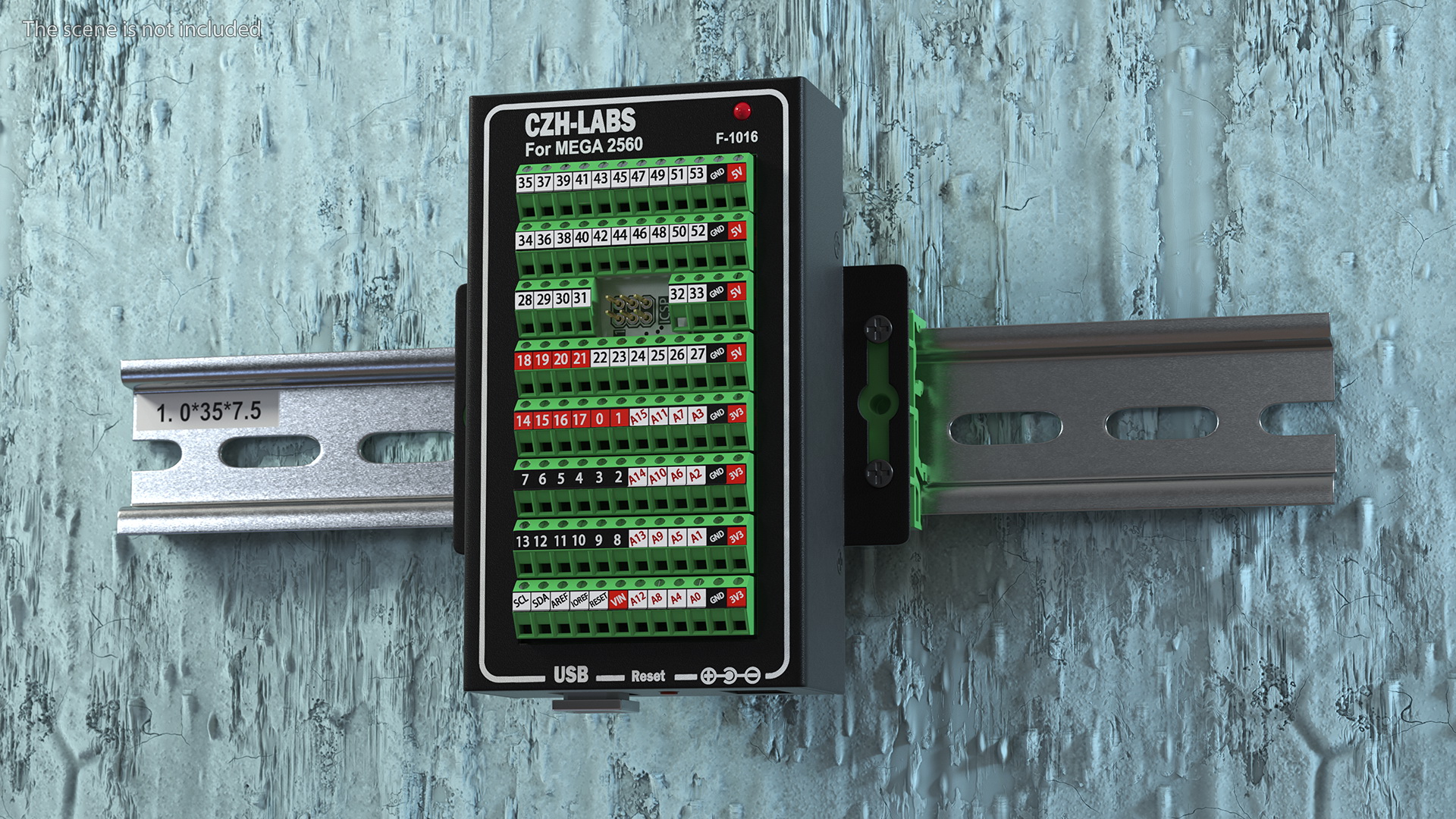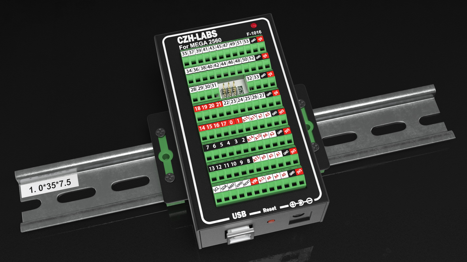 Mega Screw Terminal Block Din Rail is a three-dimensional model of a contemporary bus terminal block of a specialized digital electronic component or detail, which used for popular microprocessor based DIY projects.