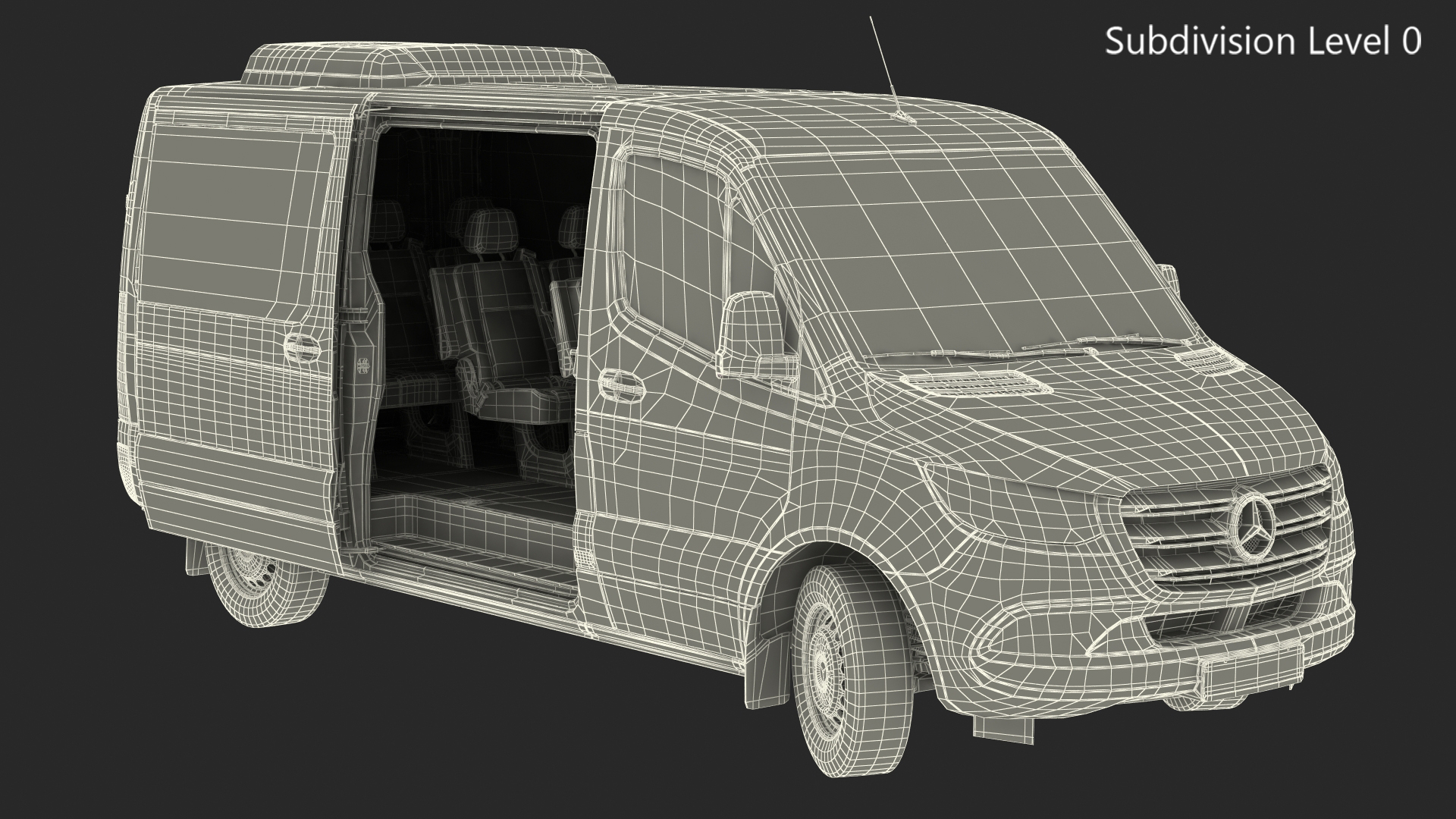 Mercedes Sprinter Tourer 319 Rigged is fully rigged and is ready to be animated. You can easily position it the way you need or animate it the way your project requires using helpers in 3D Studio Max. See the turntable to get an idea of how rigging works.