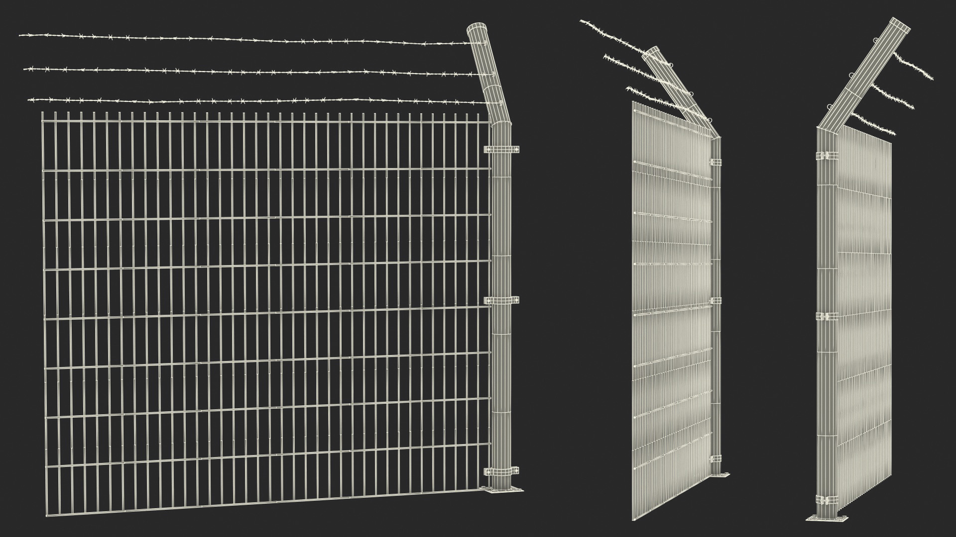 Mesh Fence With Barber Wire Green is a 3d model of woven fence with barbed wire designed to prevent vandals and unauthorized intruders from entering the site.