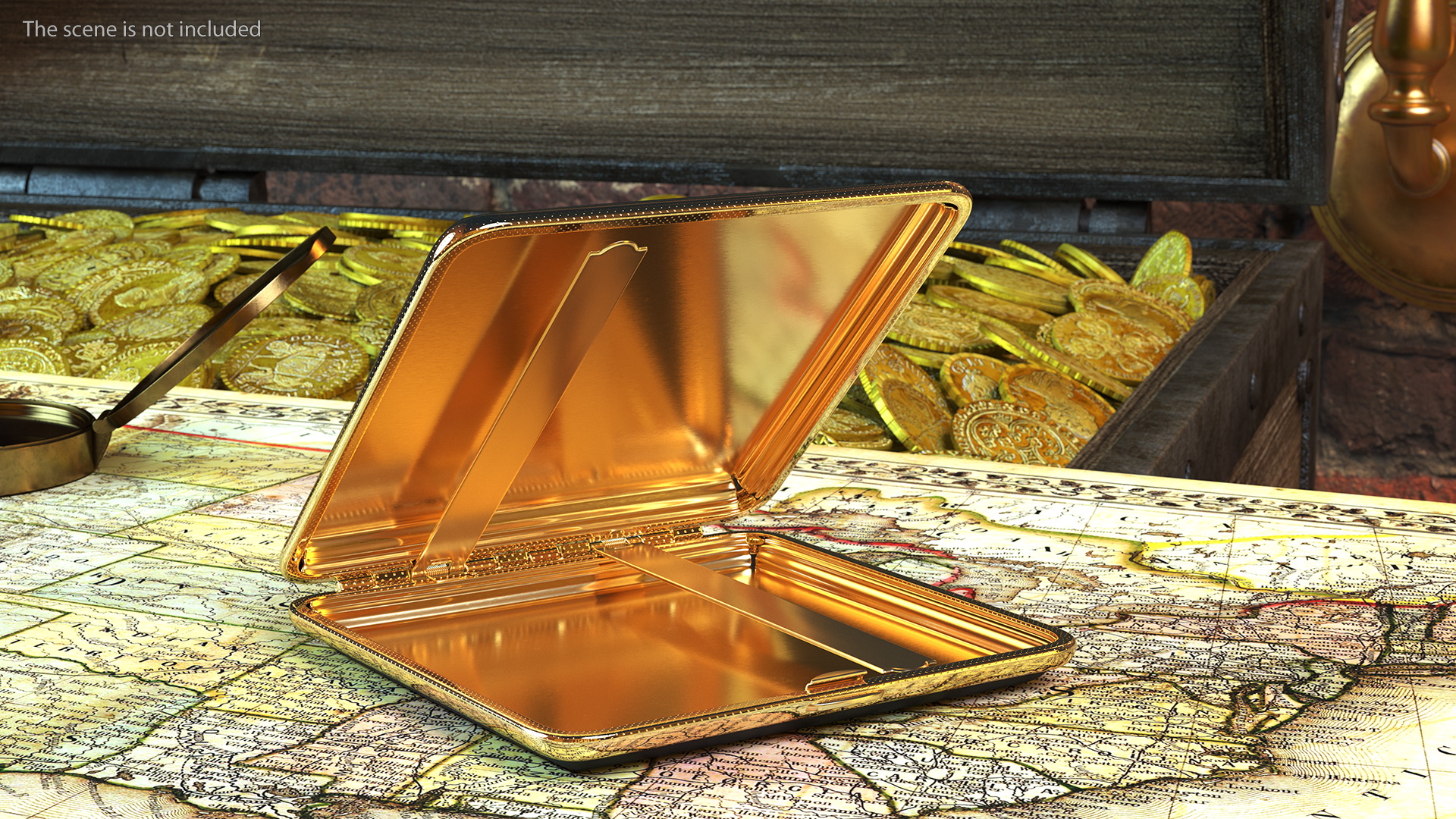 Metal Cigarette Case Gold and Black Open is a three-dimensional model of a portable metal tin container, which designed to store cigarettes etc., and prevent cigarettes from being smashed or crushed.