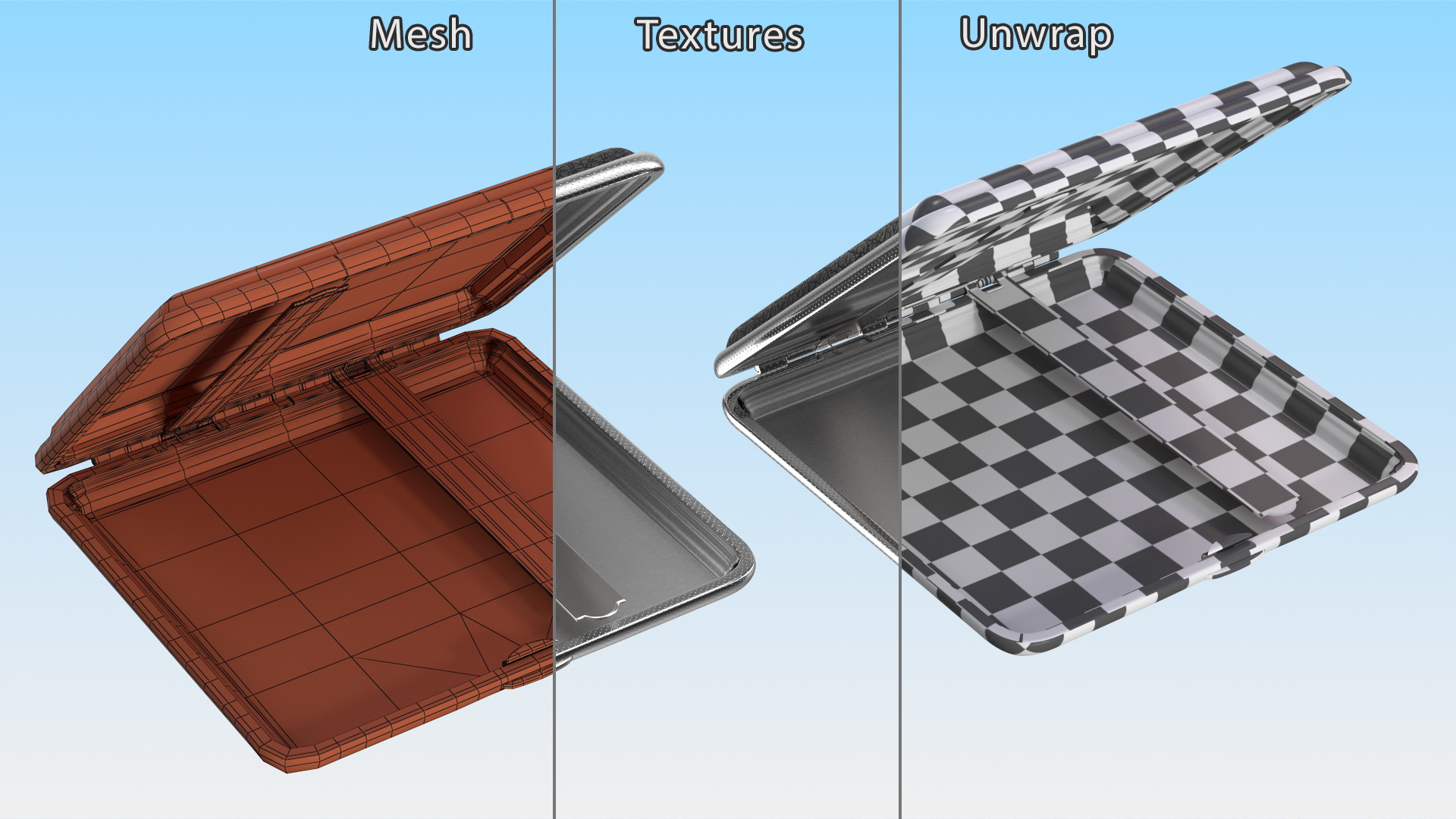 Metal Cigarette Case Silver and Black Open is a three-dimensional model of a well known metal tin container, which designed to store cigarettes and prevent cigarettes from being smashed or crushed.