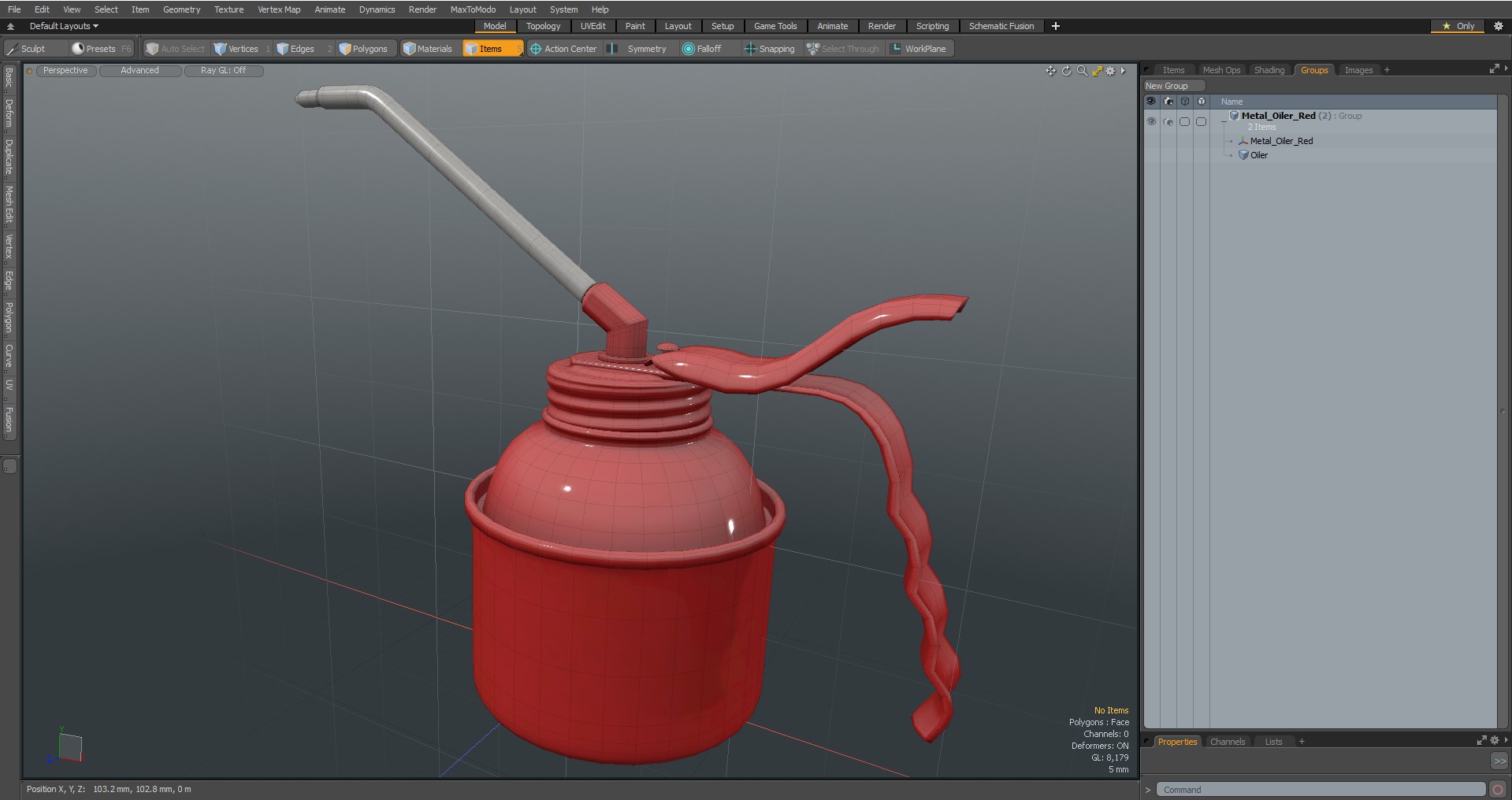 Metal Oiler Red is a three-dimensional model of vintage metal oiler with a manual pump lever and a special high-pressure nozzle which is a precision tool designed for lubricating machinery and equipment.