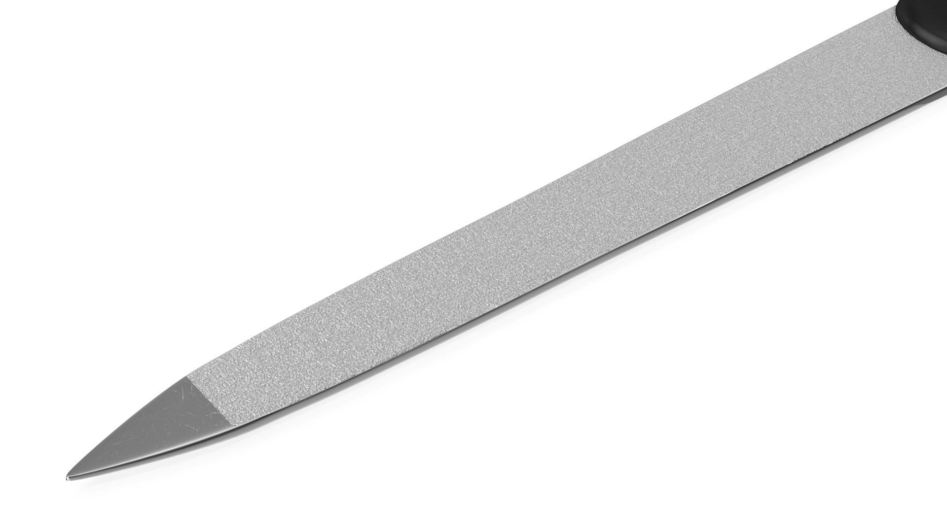 Metallic Nail File with Black Handle is a three-dimensional model of nail file steel manicure instrument (fingernail care cosmetic beauty tool).