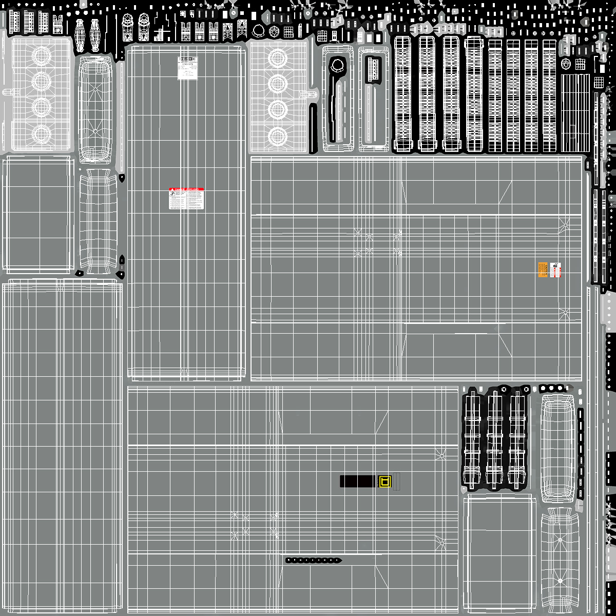 All textures and materials are included and mapped. (All colors can be easily modified.)
