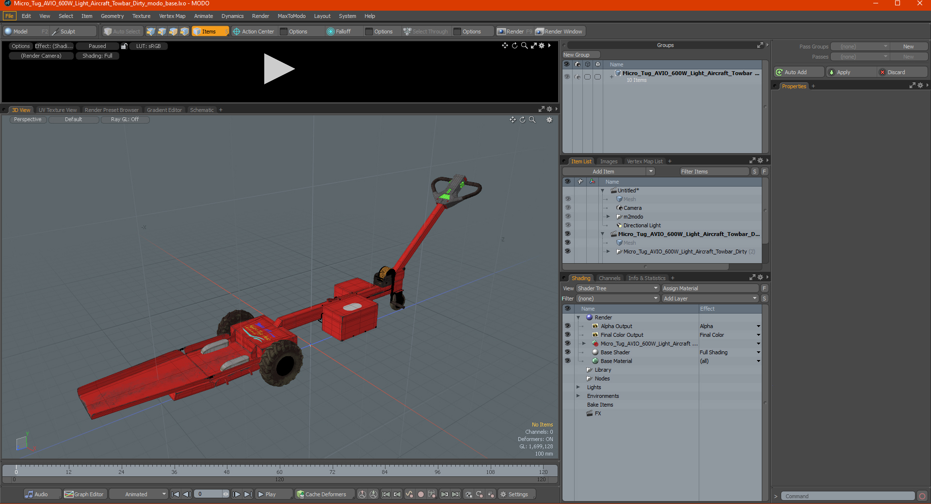 Micro Tug AVIO 600W Light Aircraft Towbar Dirty is a high quality, photo real 3d model that will enhance detail and realism to any of your rendering projects. The model has a fully textured, detailed design that allows for close-up renders, and was originally modeled in 3ds Max 2020 and rendered with V-Ray. Renders have no postprocessing!