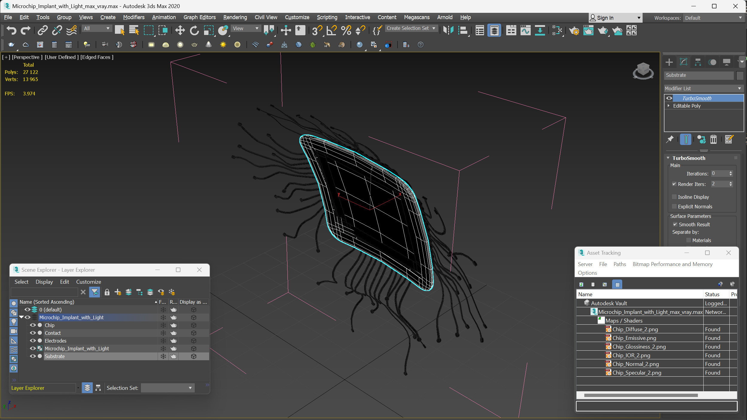 Microchip Implant with Light is a high quality, photo real 3d model that will enhance detail and realism to any of your rendering projects. The model has a fully textured, detailed design that allows for close-up renders, and was originally modeled in 3ds Max 2020 and rendered with V-Ray. Renders have no postprocessing!
