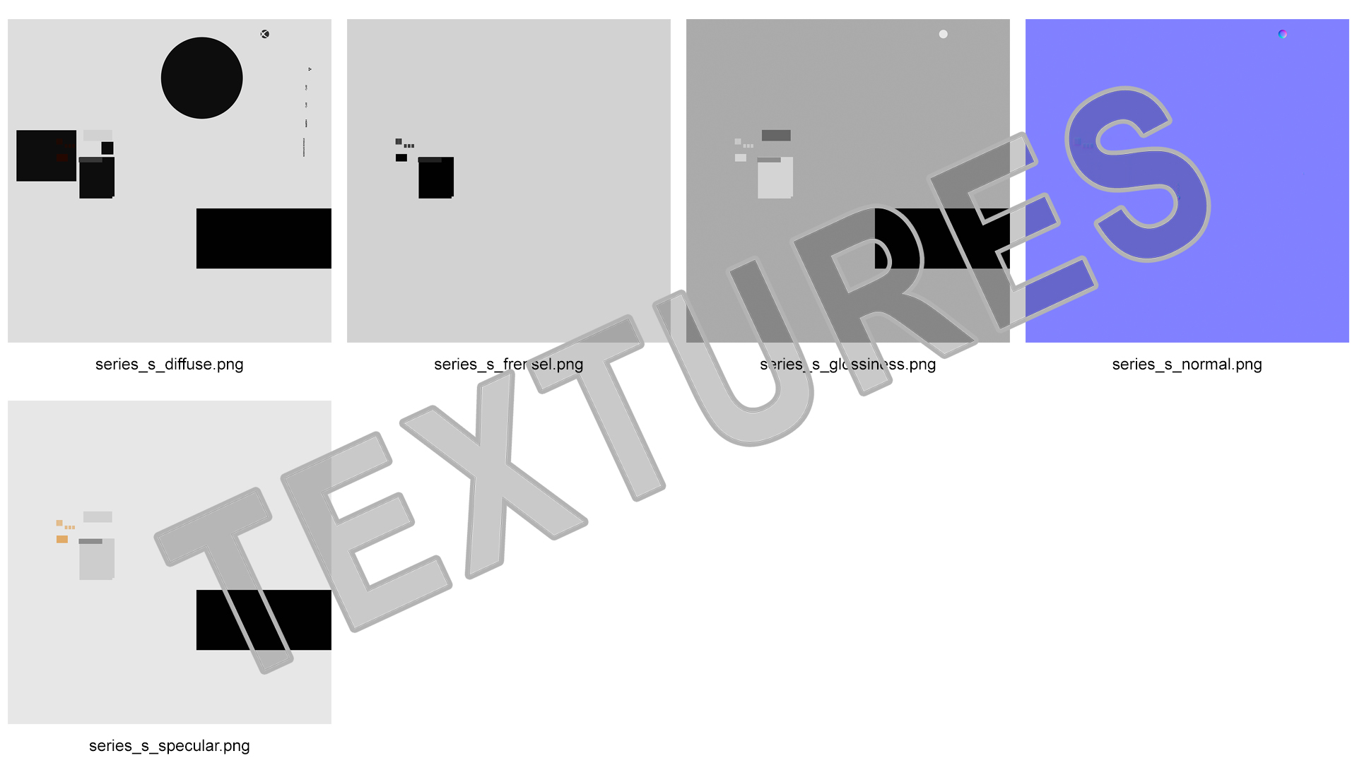 All textures and materials are included and mapped. (All colors can be easily modified.)