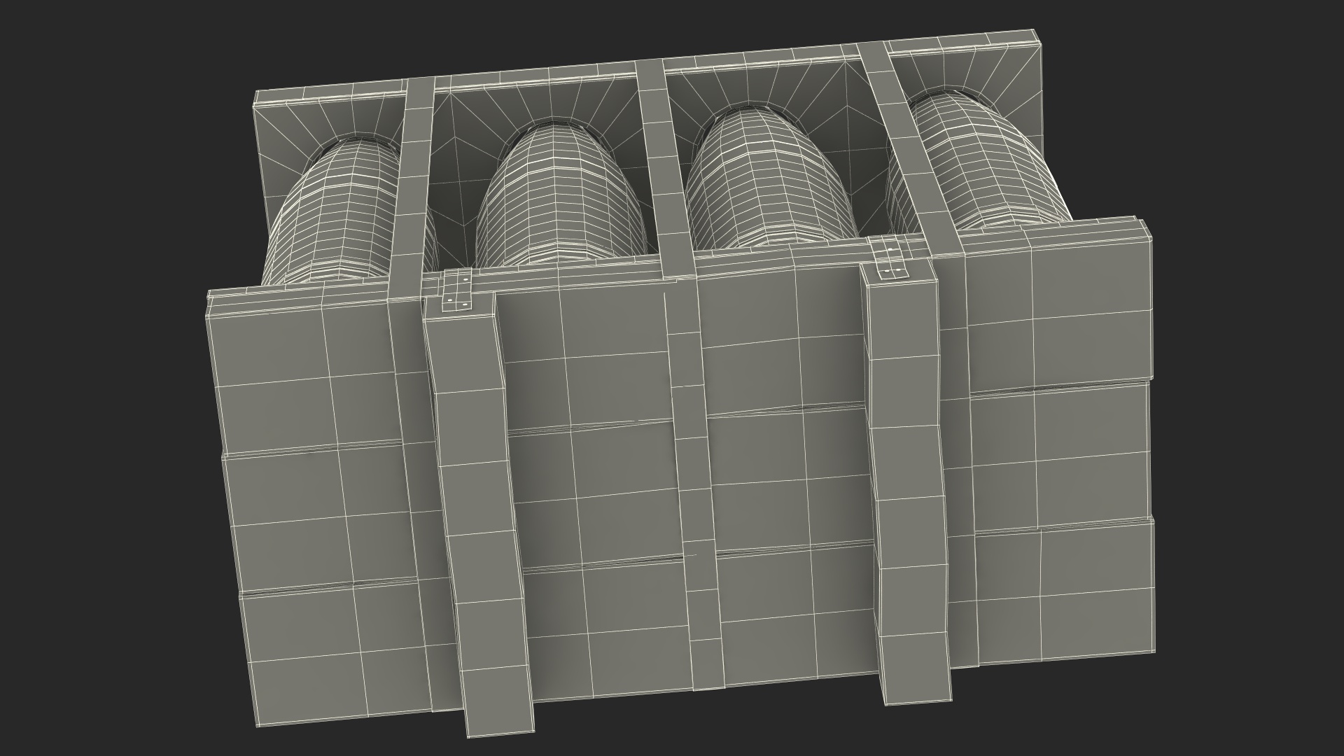Military Artillery Shells 155mm in Transport Pallet is a 3d model of a specific method of packaging and transporting 155mm artillery shells for military use.