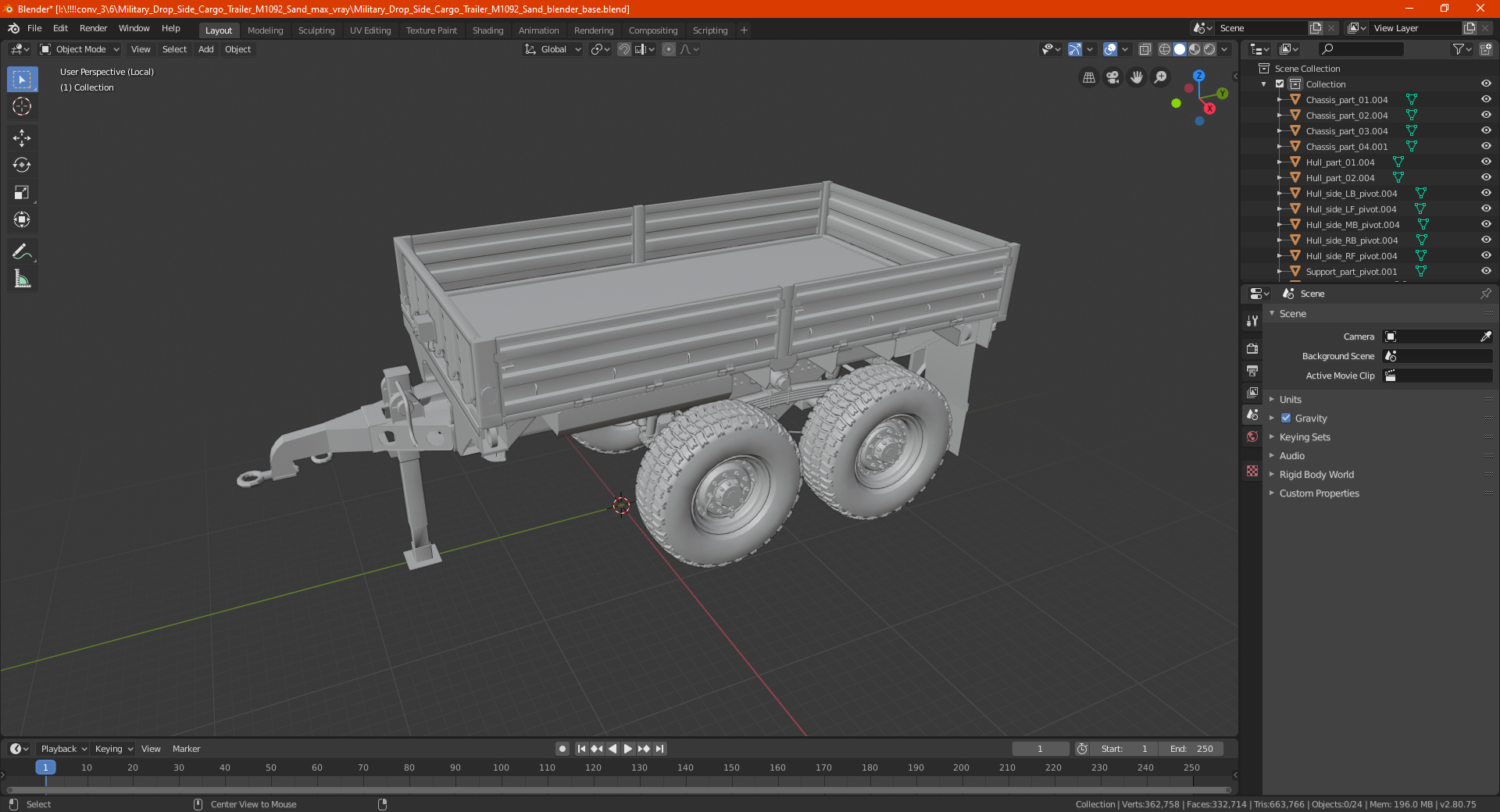 Military Drop Side Cargo Trailer M1092 Sand is a high quality, photo real 3d model that will enhance detail and realism to any of your rendering projects. The model has a fully textured, detailed design that allows for close-up renders, and was originally modeled in 3ds Max 2020 and rendered with V-Ray. Renders have no postprocessing!