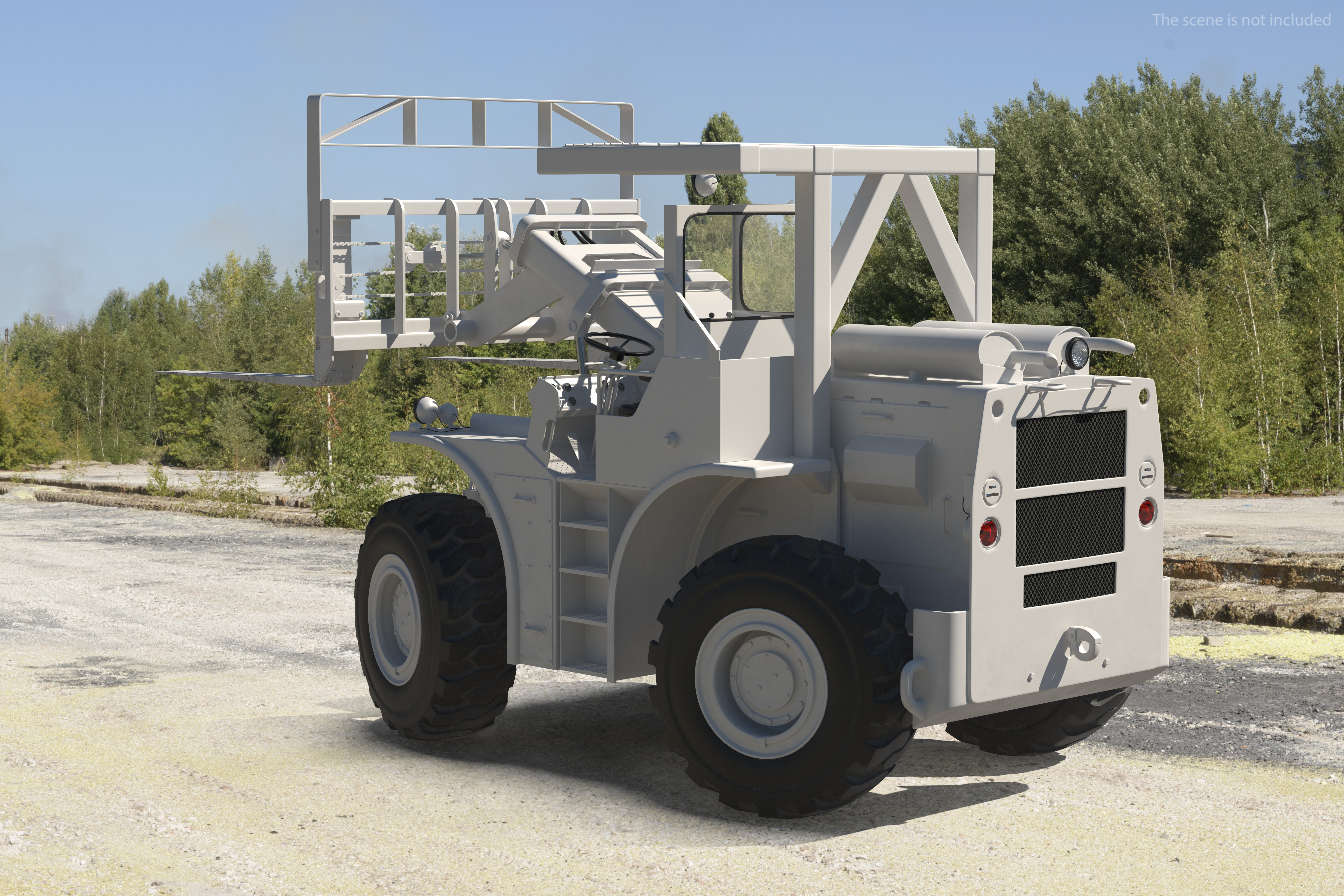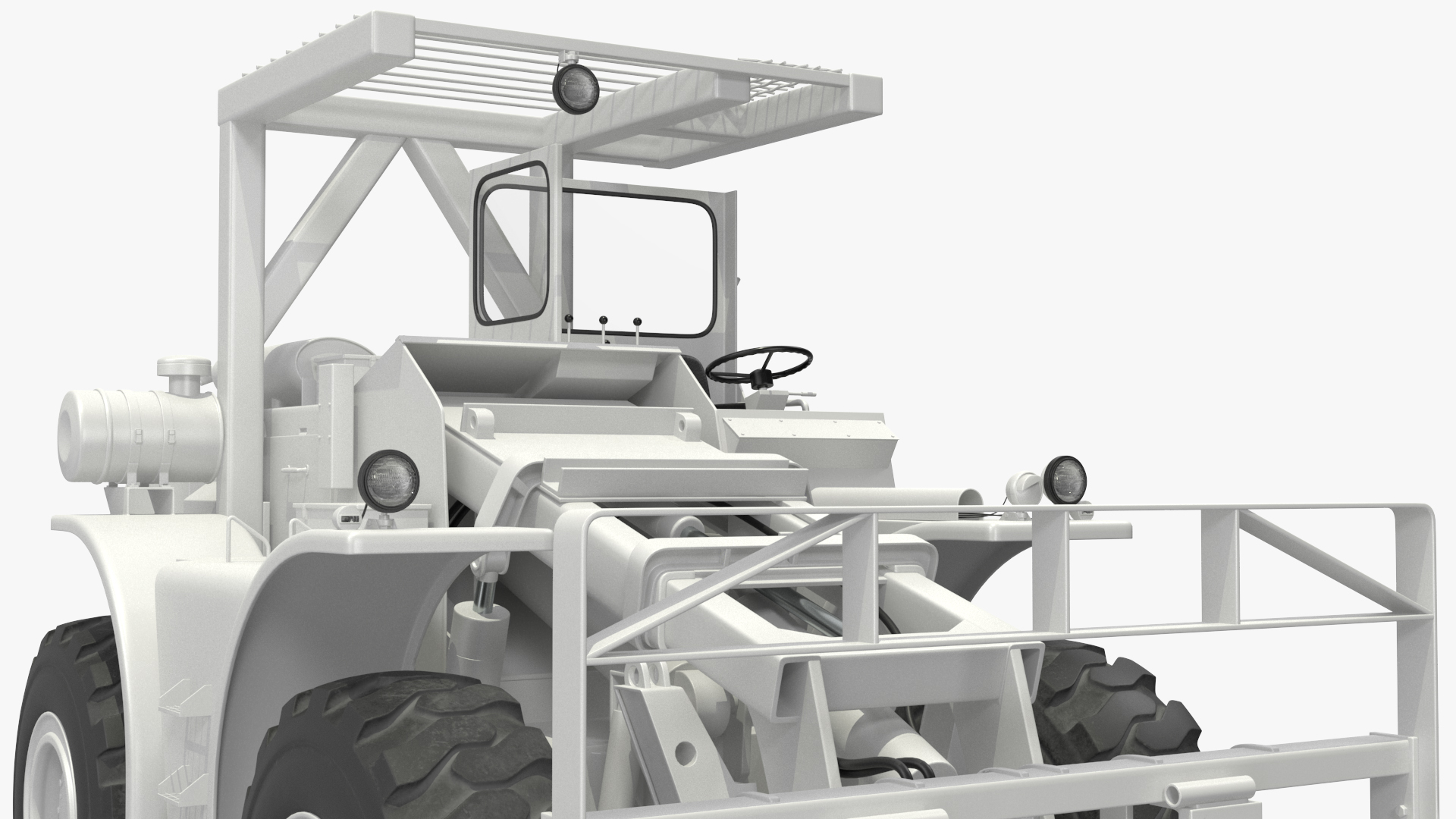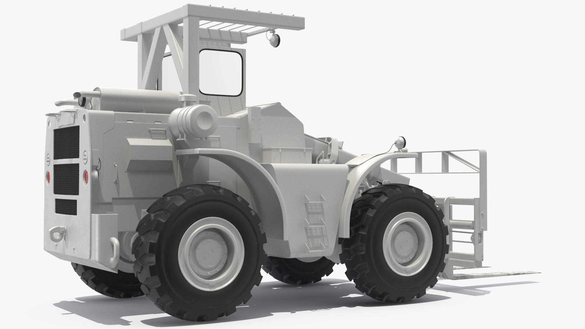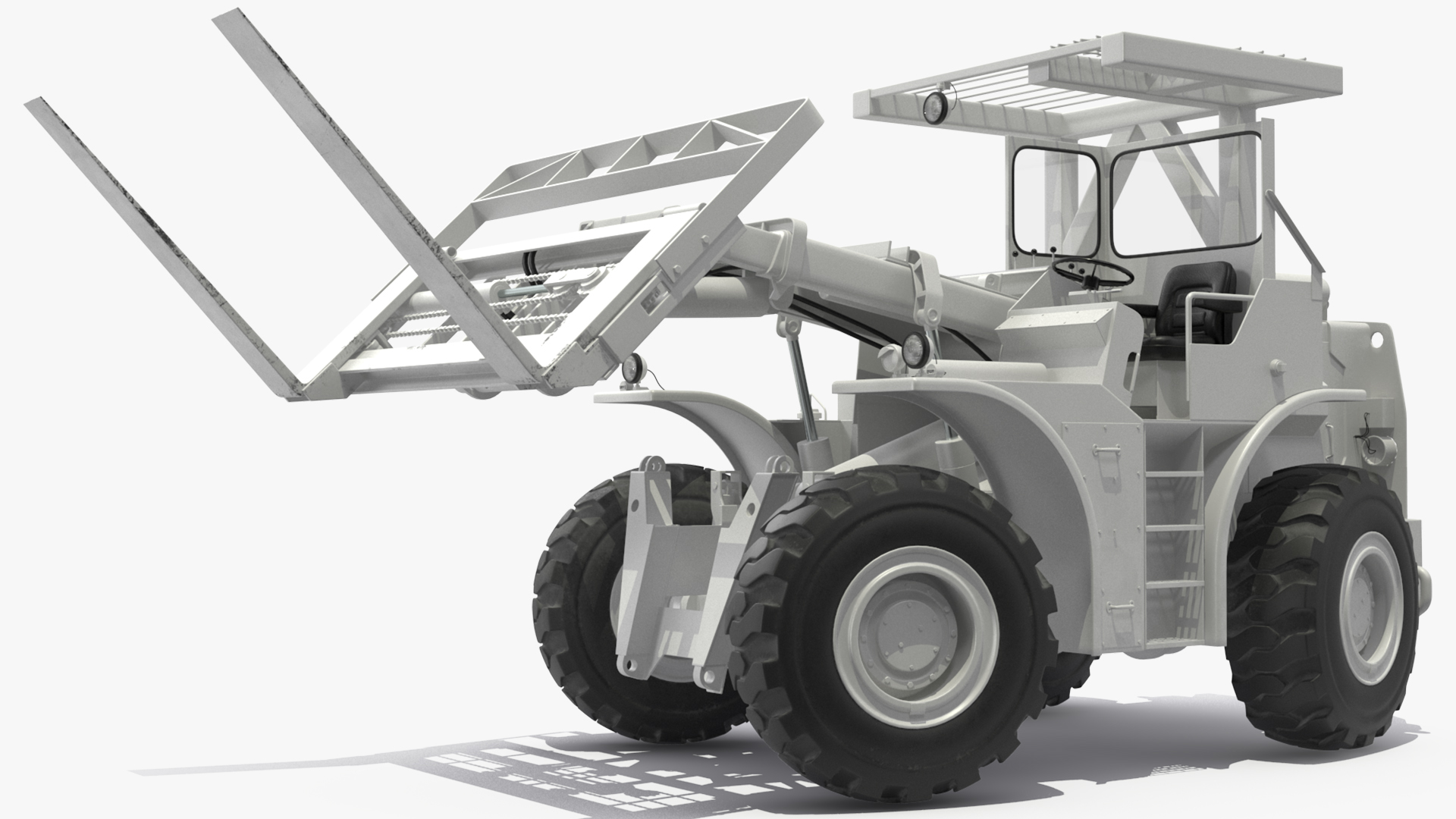 Military Forklift White Rigged an army terrain special support transport a heavy vehicle (lift truck, fork hoist, fork truck, jitney, or forklift truck).