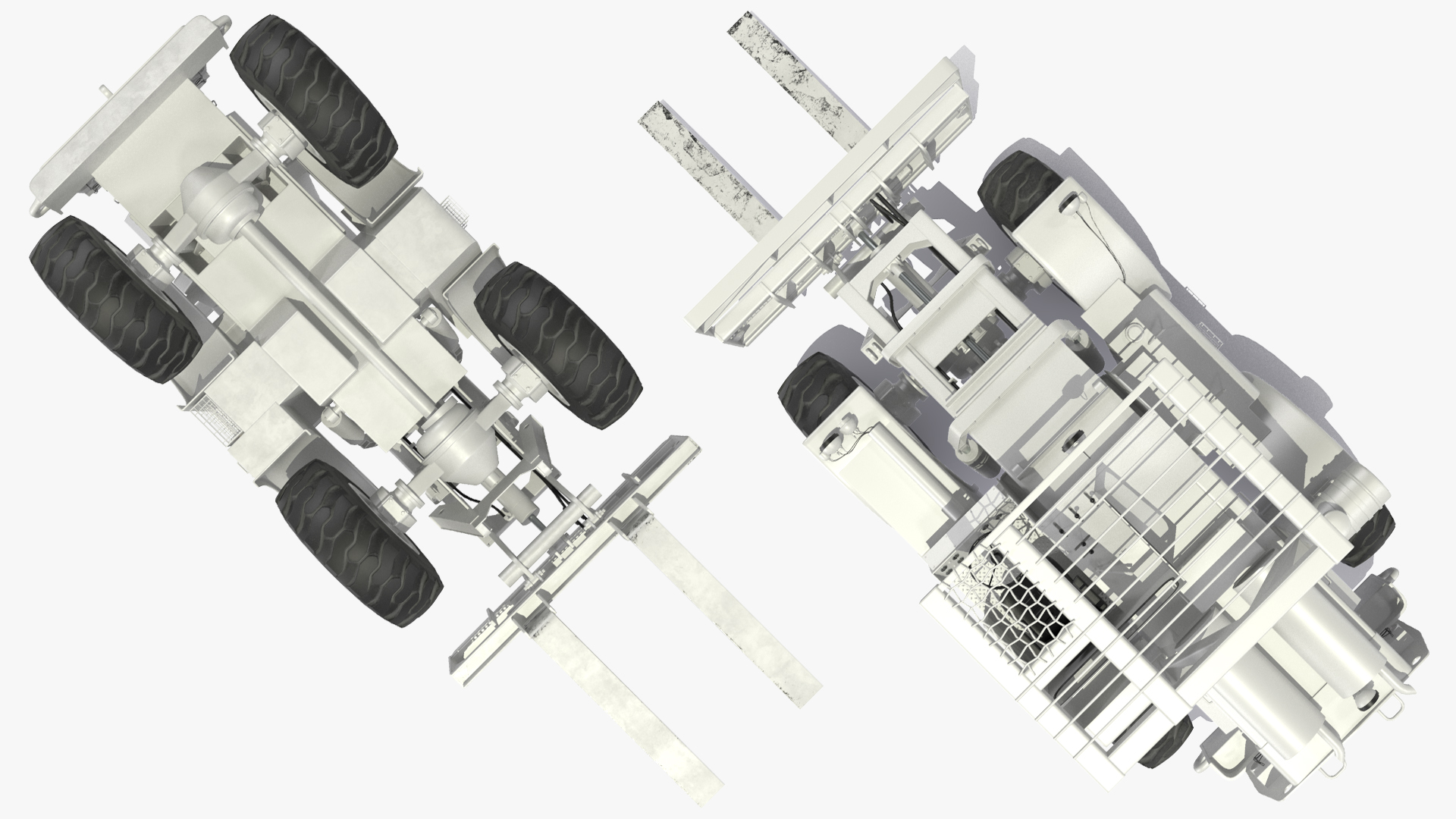 Military Forklift White Rigged is fully rigged and is ready to be animated. You can easily position it the way you need or animate it the way your project requires using helpers in 3D Studio Max. See the turntable to get an idea of how rigging works.