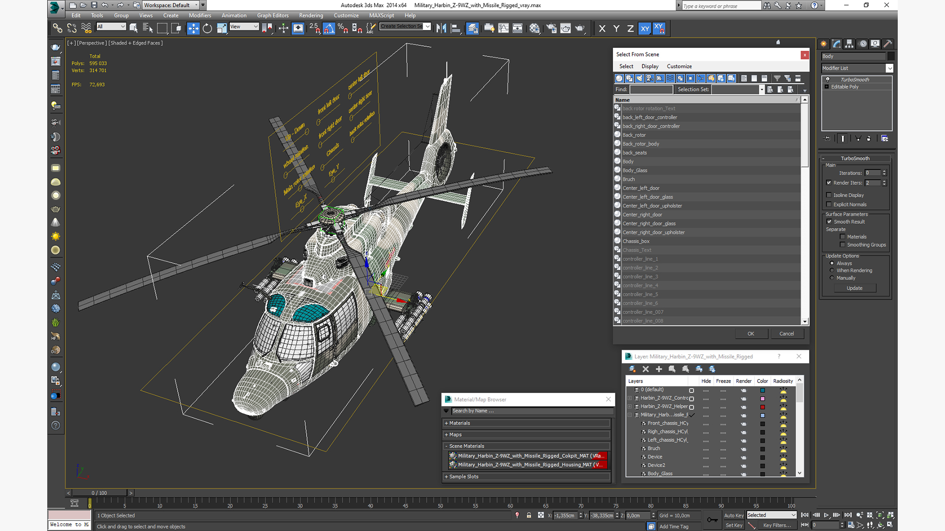 Military Harbin Z-9WZ with Missile Rigged is fully rigged and is ready to be animated. You can easily position it the way you need or animate it the way your project requires using helpers in 3D Studio Max. See the turntable to get an idea of how rigging works.