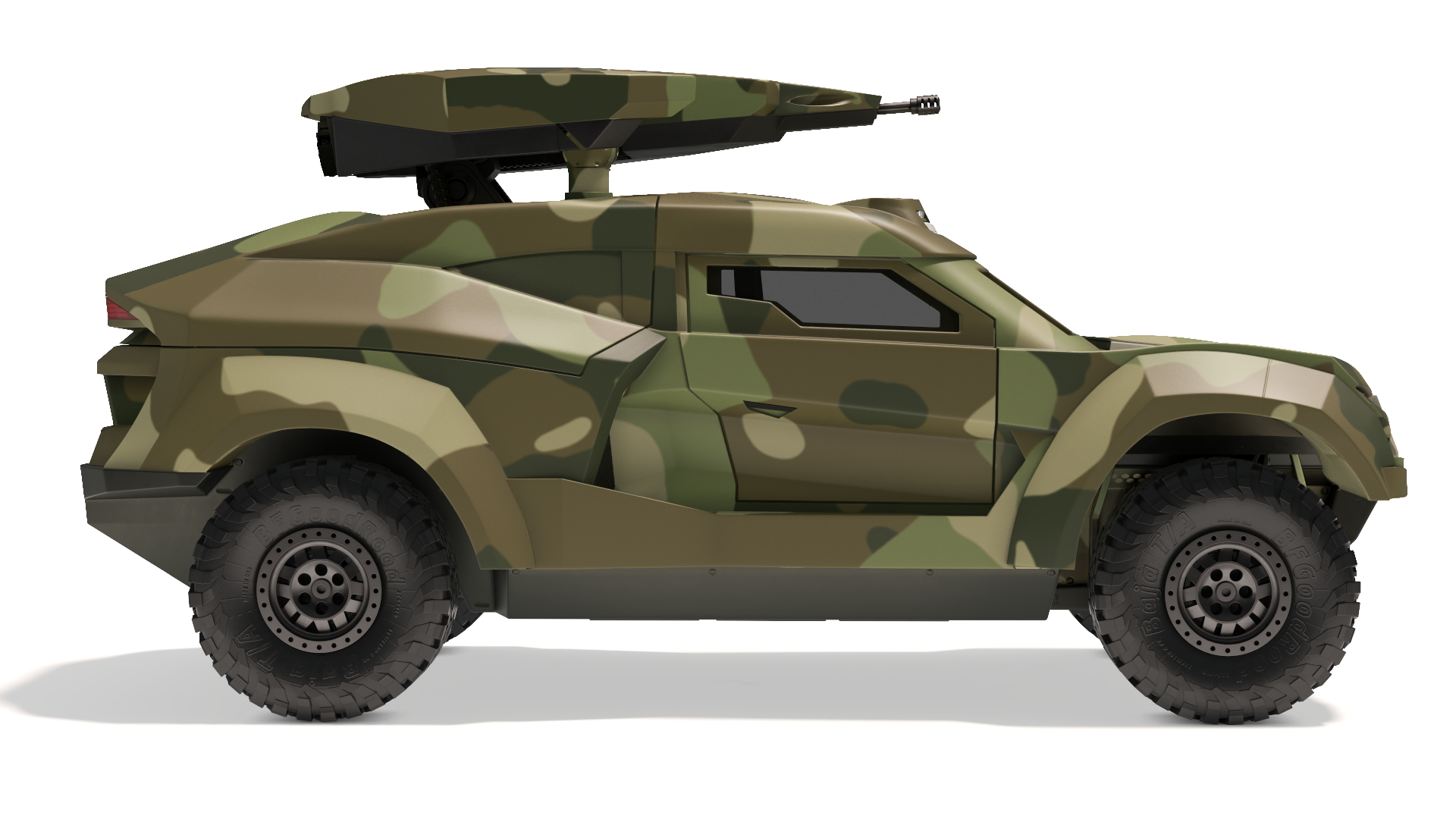 Military Interceptor Vehicle in Camouflage Rigged is a high quality, photo real 3d model that will enhance detail and realism to any of your rendering projects. The model has a fully textured, detailed design that allows for close-up renders, and was originally modeled in 3ds Max 2020 and rendered with V-Ray. Renders have no postprocessing!