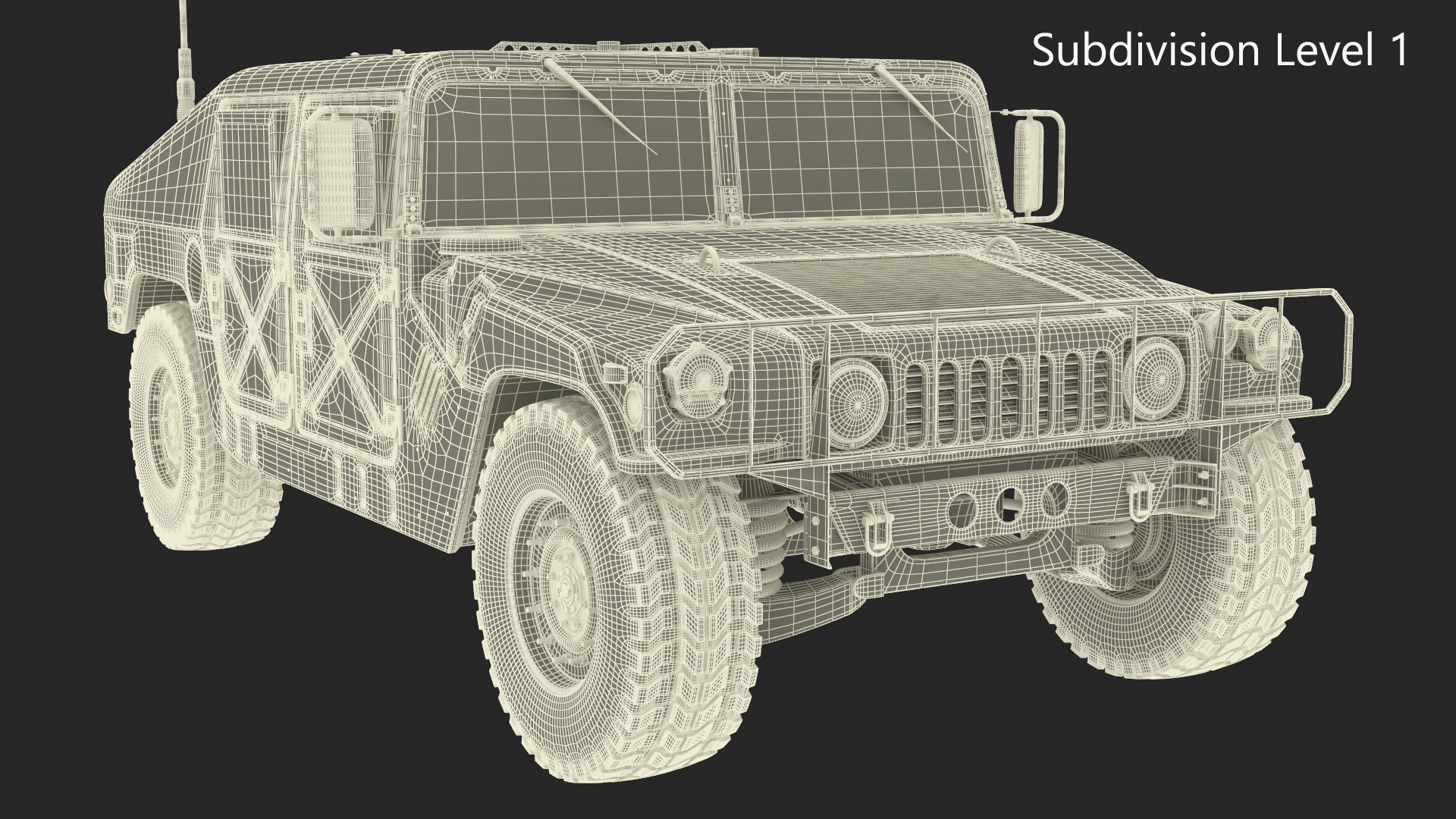 Military Off Road Utility Vehicle Humvee is a 3d model of a rugged, all-terrain military vehicle designed for off-road missions and tactical operations in extreme environments.