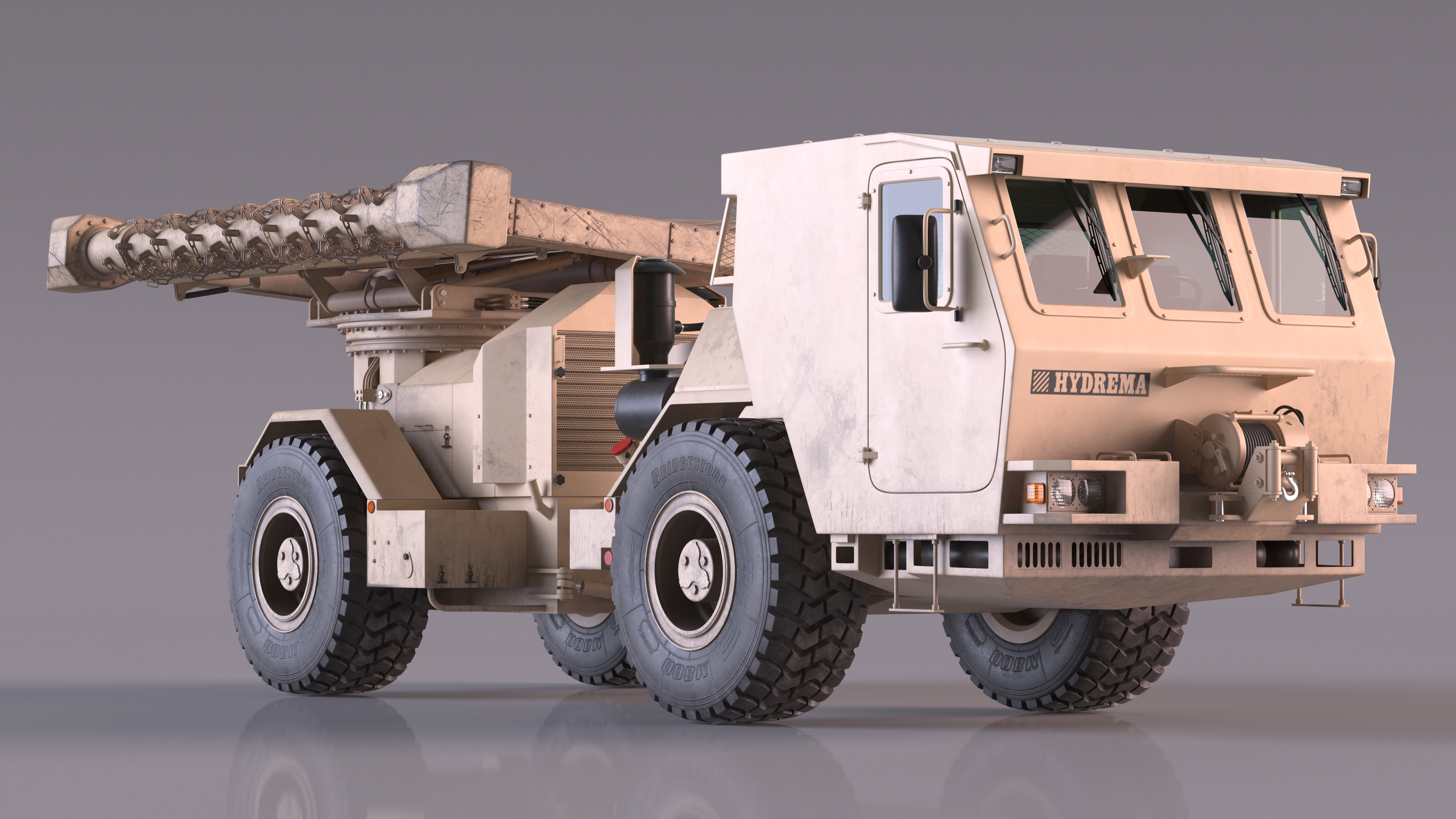 Mine Clearing Vehicle Hydrema 910 Sand Used Rigged is fully rigged and is ready to be animated. You can easily position it the way you need or animate it the way your project requires using helpers in 3D Studio Max. See the turntable to get an idea of how rigging works.