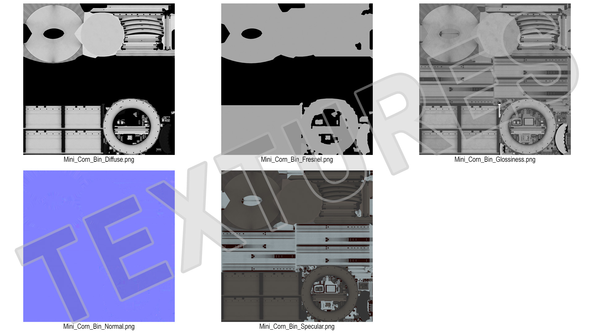 Mini Corn Bin is a high quality, photo real 3d model that will enhance detail and realism to any of your rendering projects. The model has a fully textured, detailed design that allows for close-up renders, and was originally modeled in 3ds Max 2020 and rendered with V-Ray. Renders have no postprocessing!