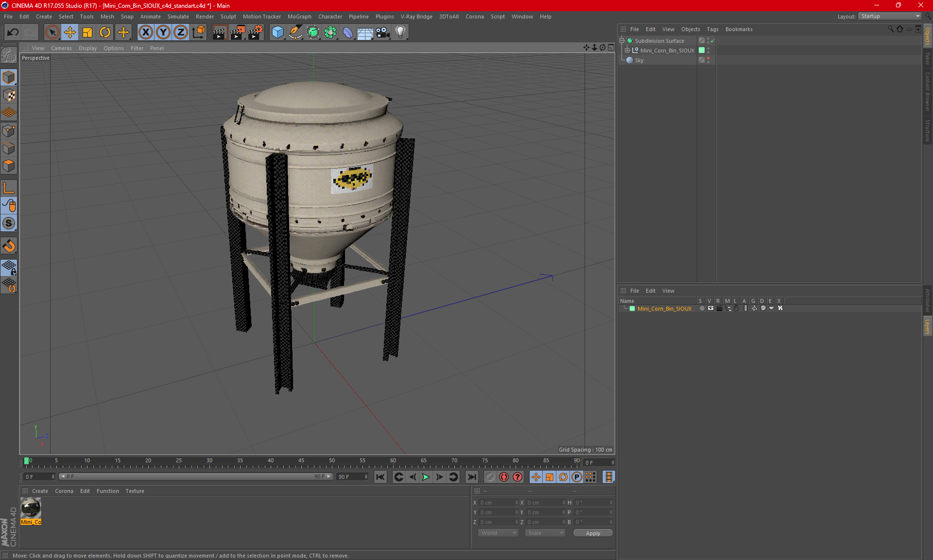 Mini Corn Bin SIOUX is a high quality, photo real 3d model that will enhance detail and realism to any of your rendering projects. The model has a fully textured, detailed design that allows for close-up renders, and was originally modeled in 3ds Max 2020 and rendered with V-Ray. Renders have no postprocessing!