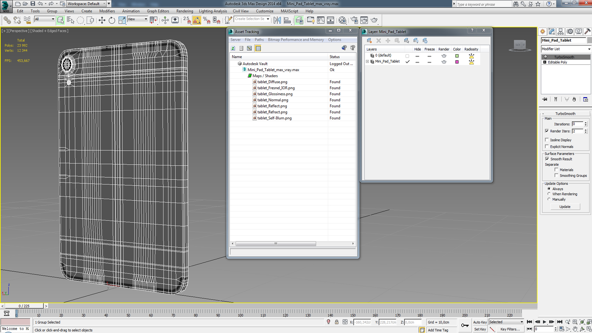Mini Pad Tablet is a high quality, photo real 3d model that will enhance detail and realism to any of your rendering projects. The model has a fully textured, detailed design that allows for close-up renders, and was originally modeled in 3ds Max 2020 and rendered with V-Ray. Renders have no postprocessing!