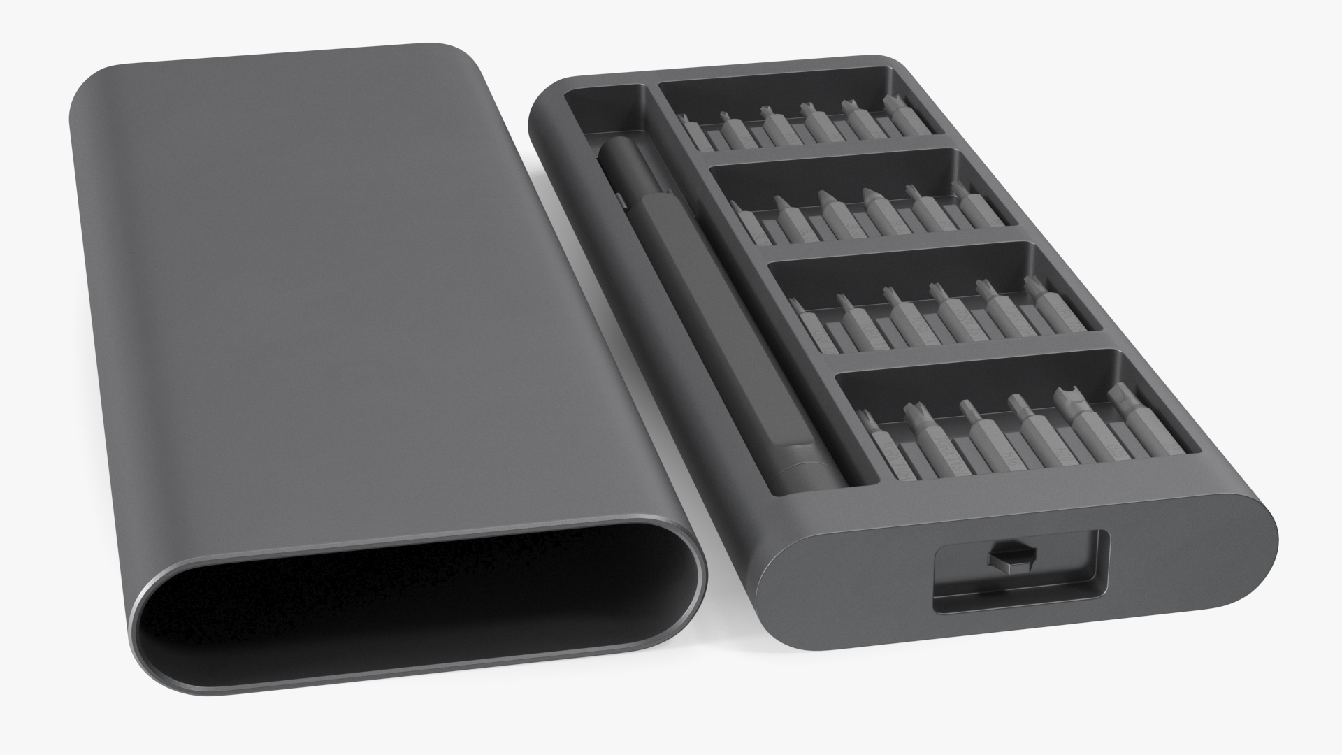 Mini Precision Screwdriver Set Open is a three-dimensional model of piece of collection of meticulously crafted tools designed for delicate tasks.