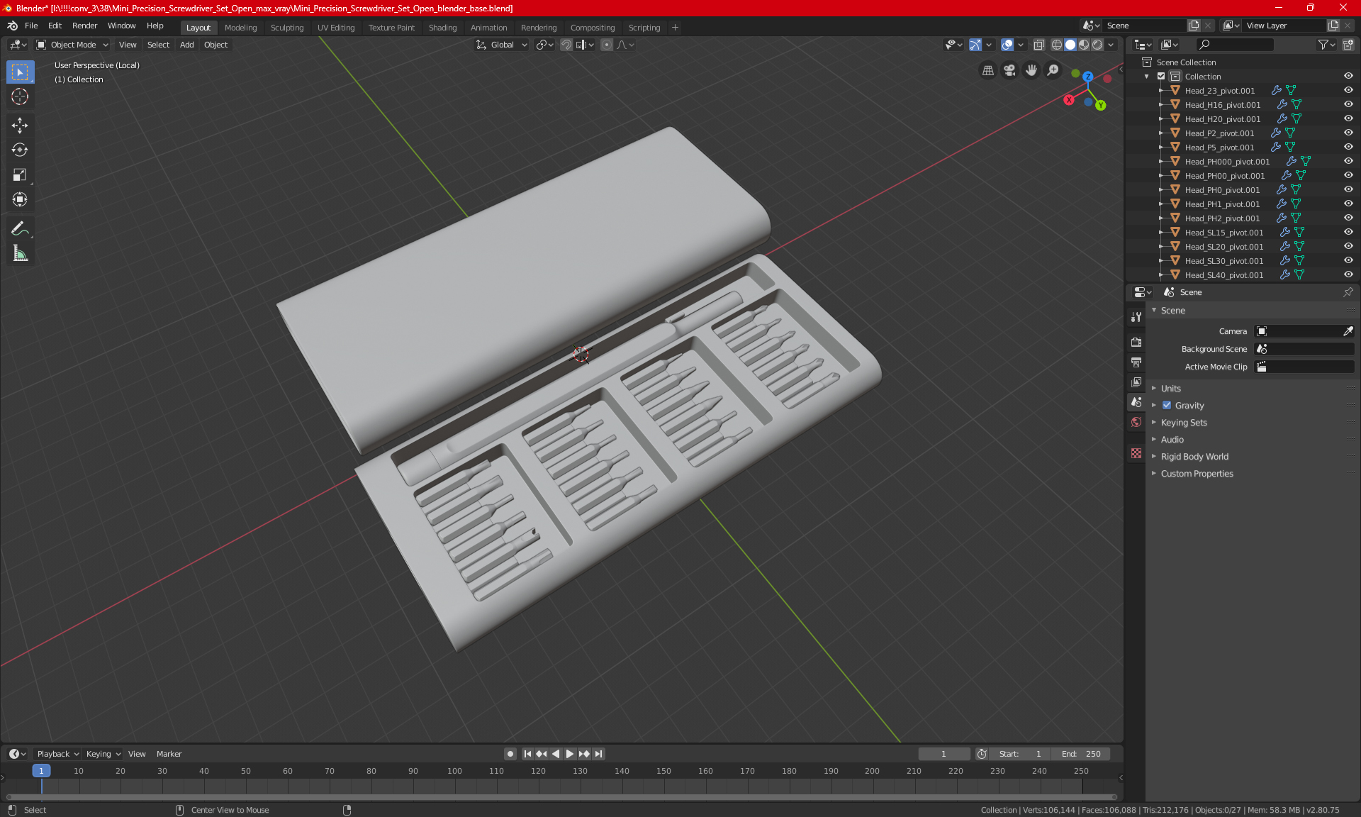 Mini Precision Screwdriver Set Open is a high quality, photo real 3d model that will enhance detail and realism to any of your rendering projects. The model has a fully textured, detailed design that allows for close-up renders, and was originally modeled in 3ds Max 2020 and rendered with V-Ray. Renders have no postprocessing!