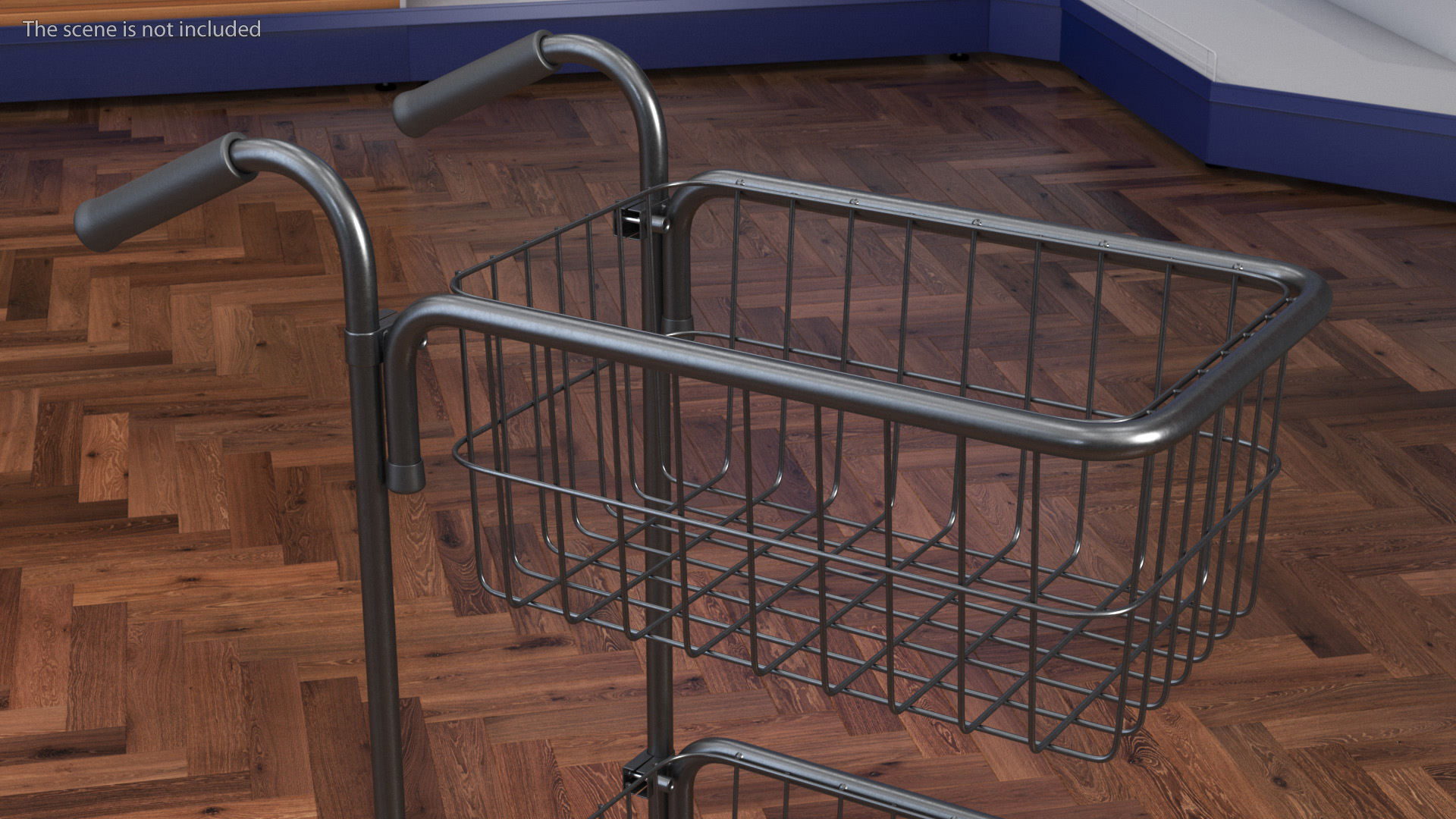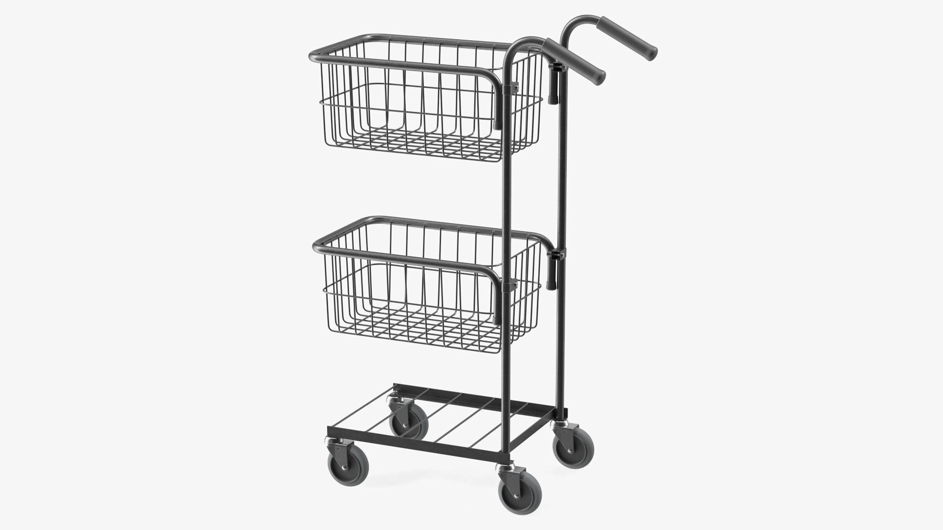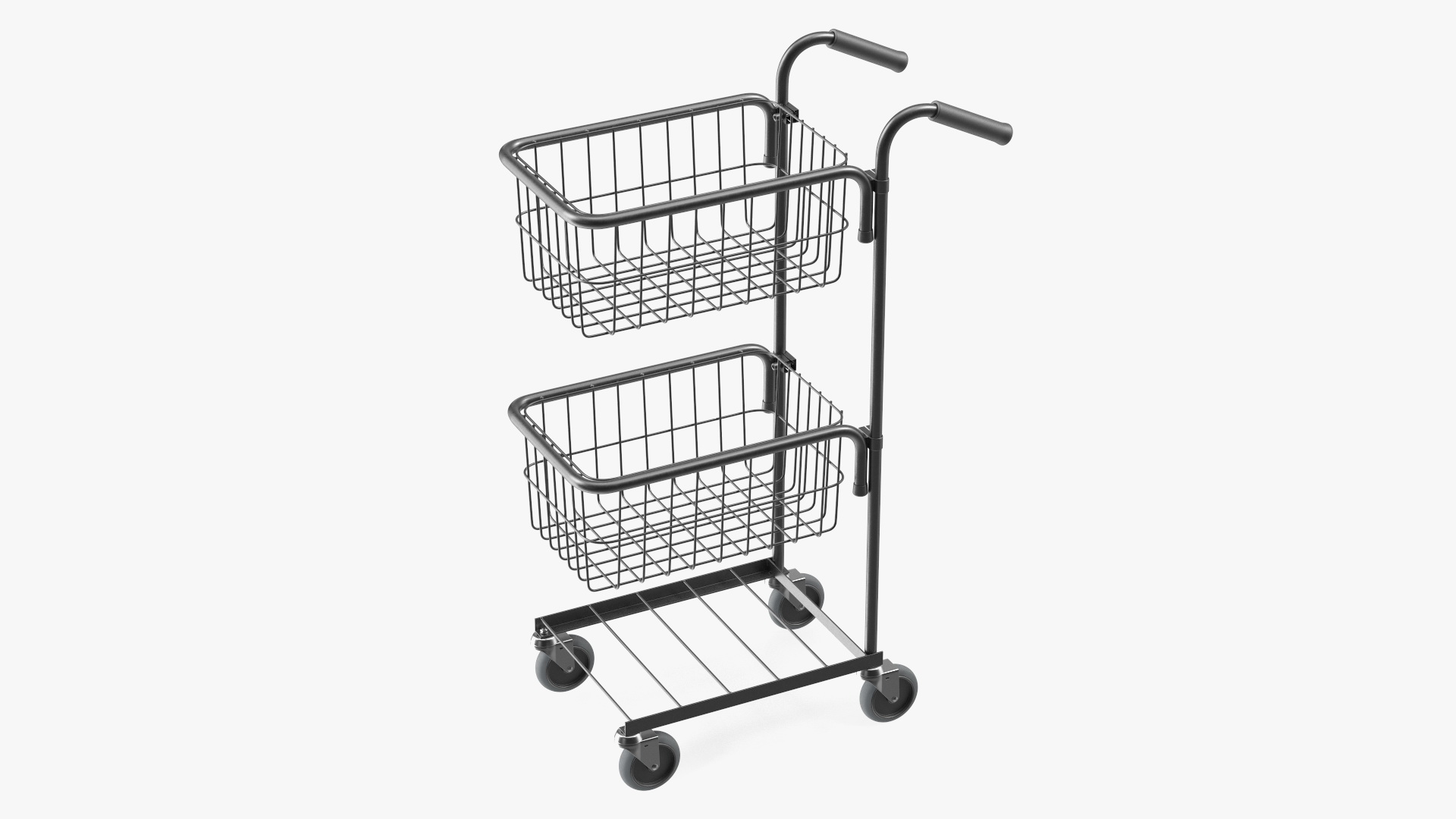 Mini Trolley with Two Baskets Black is a three-dimensional model of trolley type, metal, wheeled, carrier device, which designed to collecting and organize items indoor.