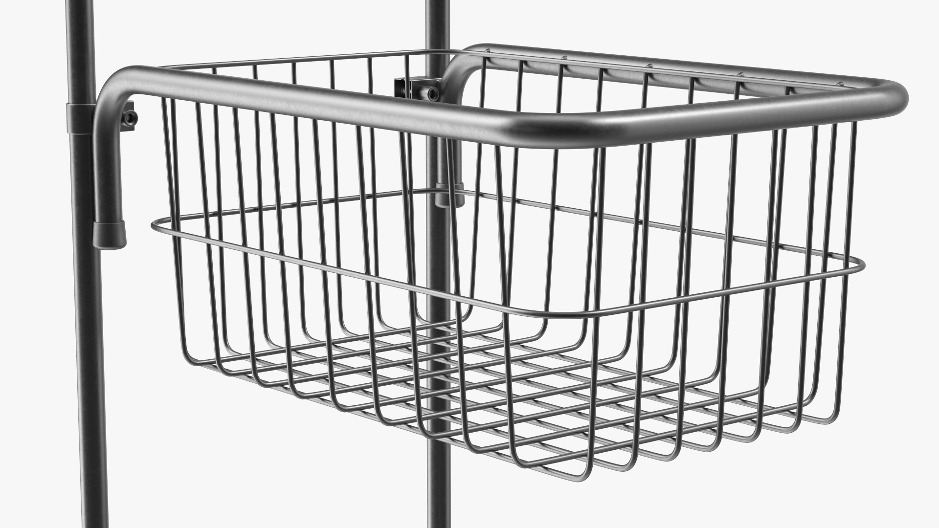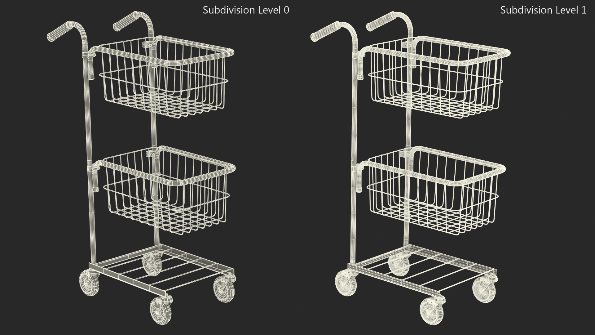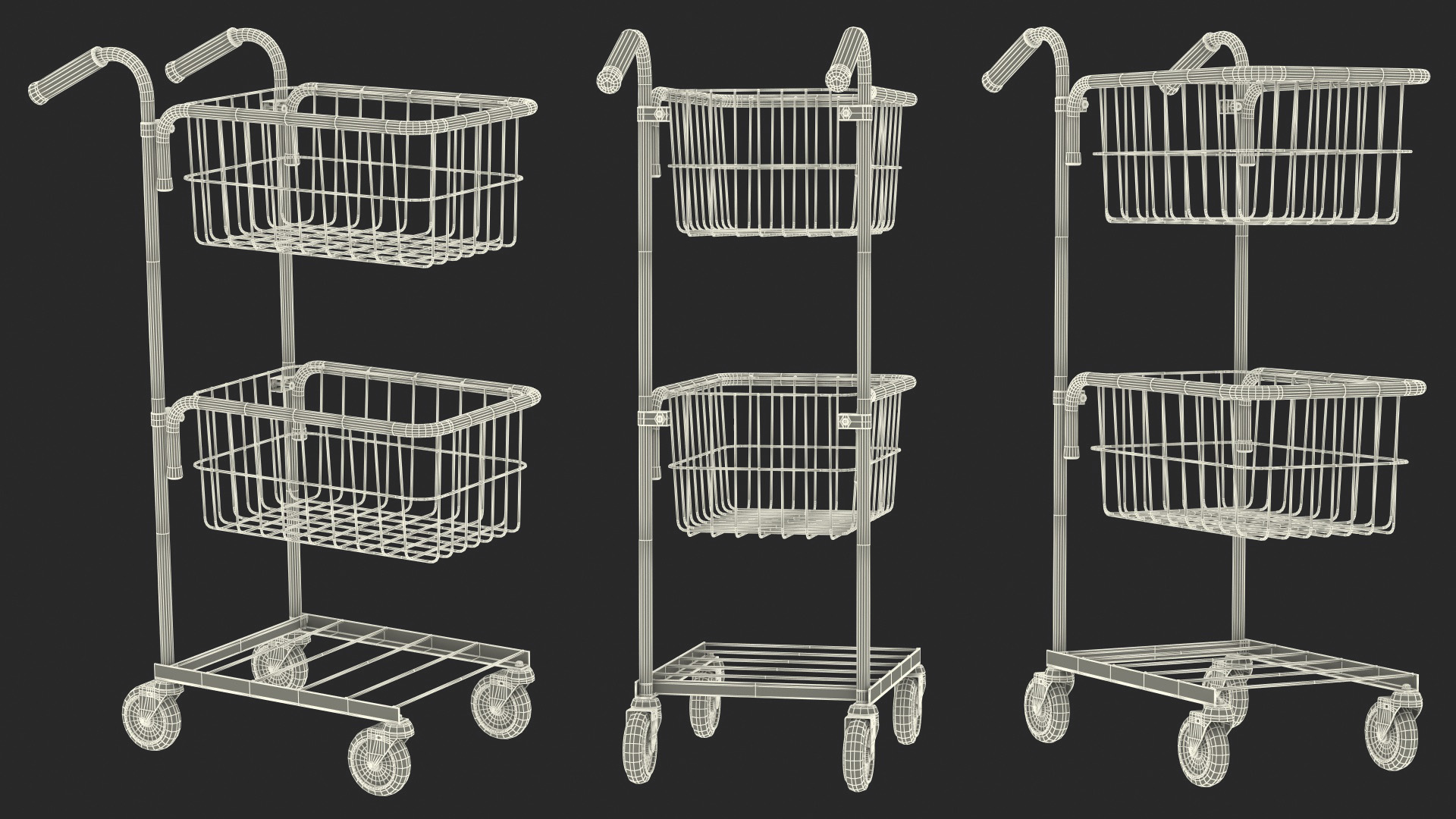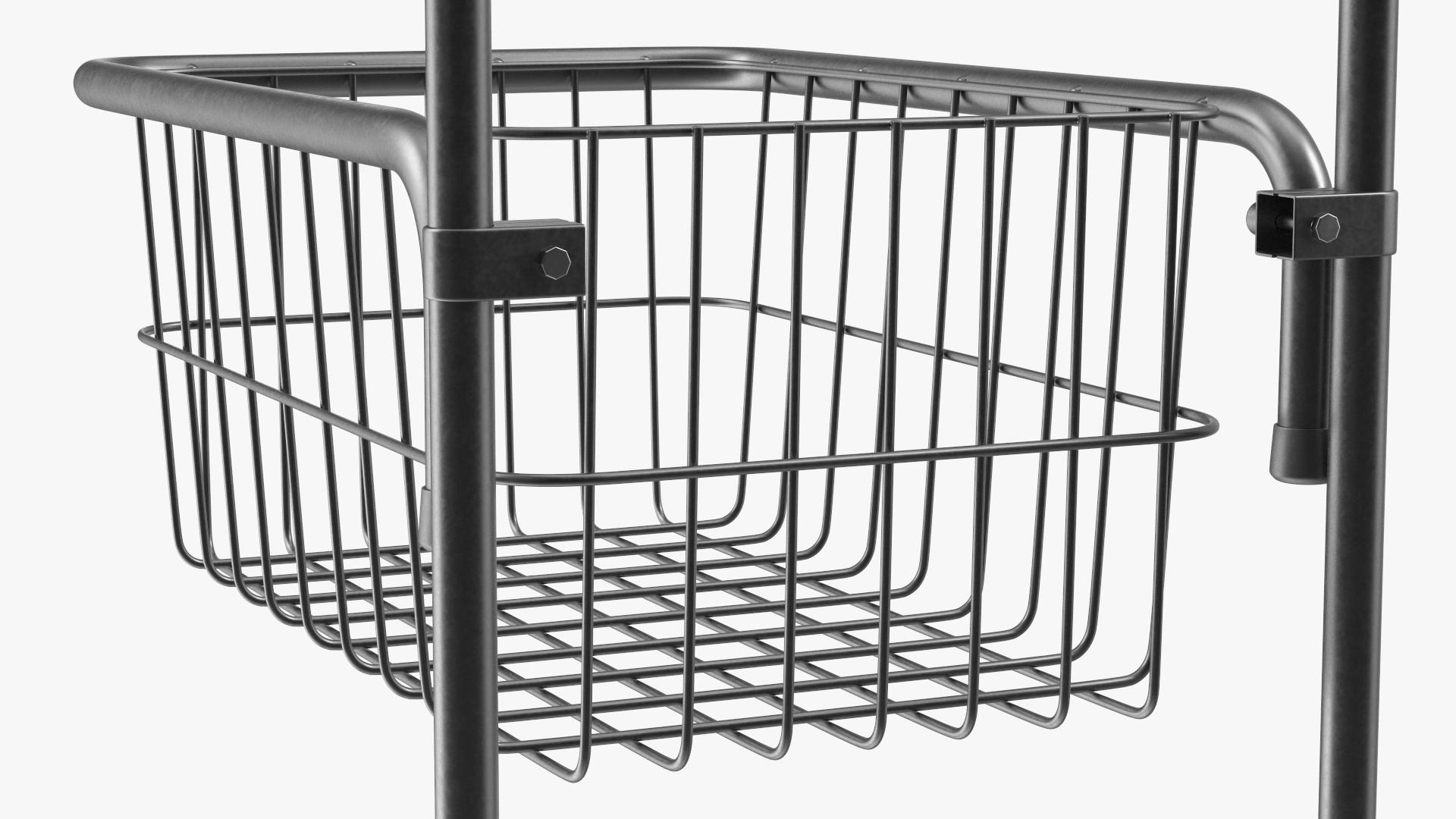 Mini Trolley with Two Baskets Black is a three-dimensional model of trolley type, metal, wheeled, carrier device, which designed to collecting and organize items indoor.