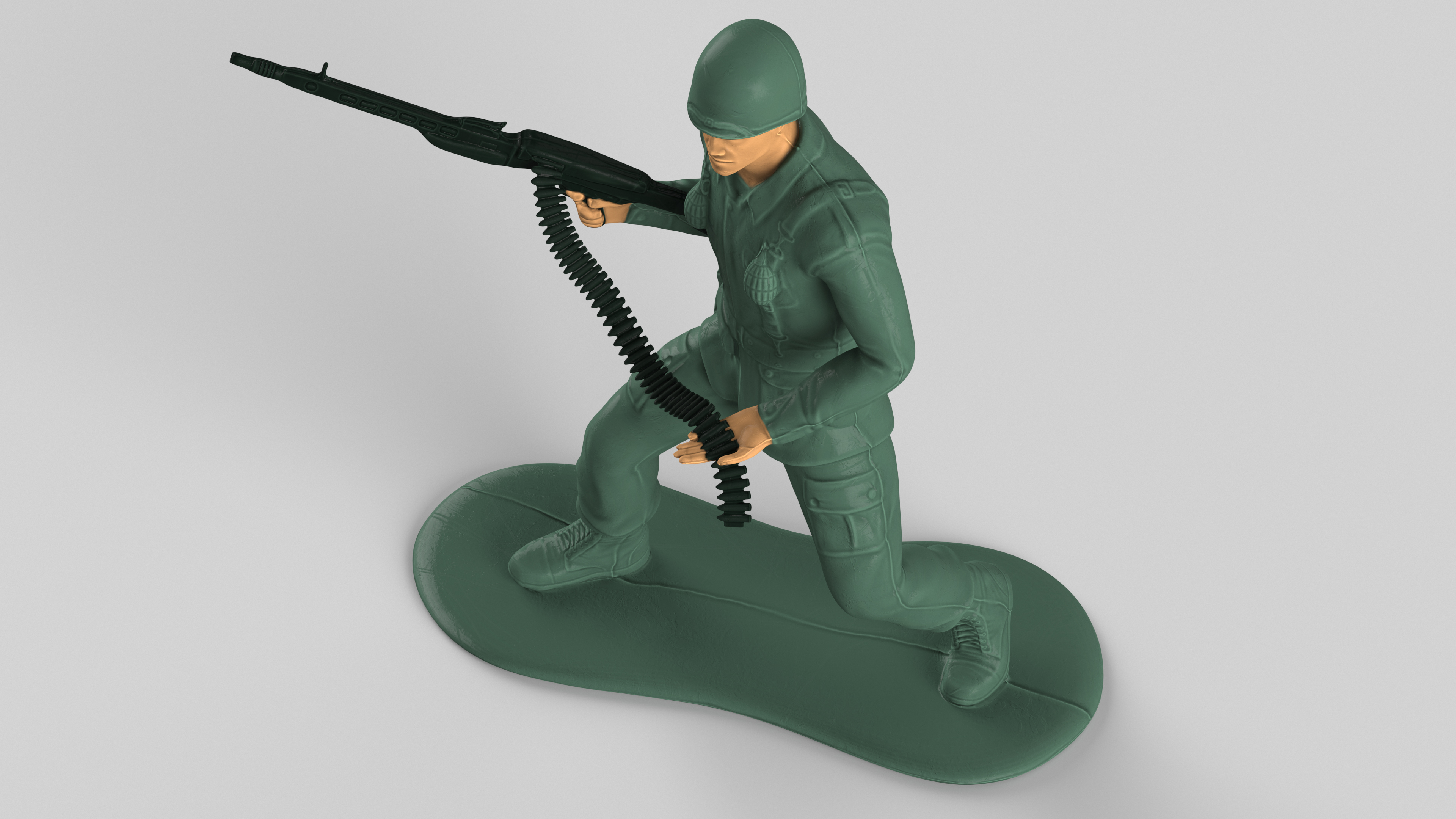 Miniature Toy Soldier with Machine Gun is a high quality, photo real 3d model that will enhance detail and realism to any of your rendering projects. The model has a fully textured, detailed design that allows for close-up renders, and was originally modeled in 3ds Max 2020 and rendered with V-Ray. Renders have no postprocessing!