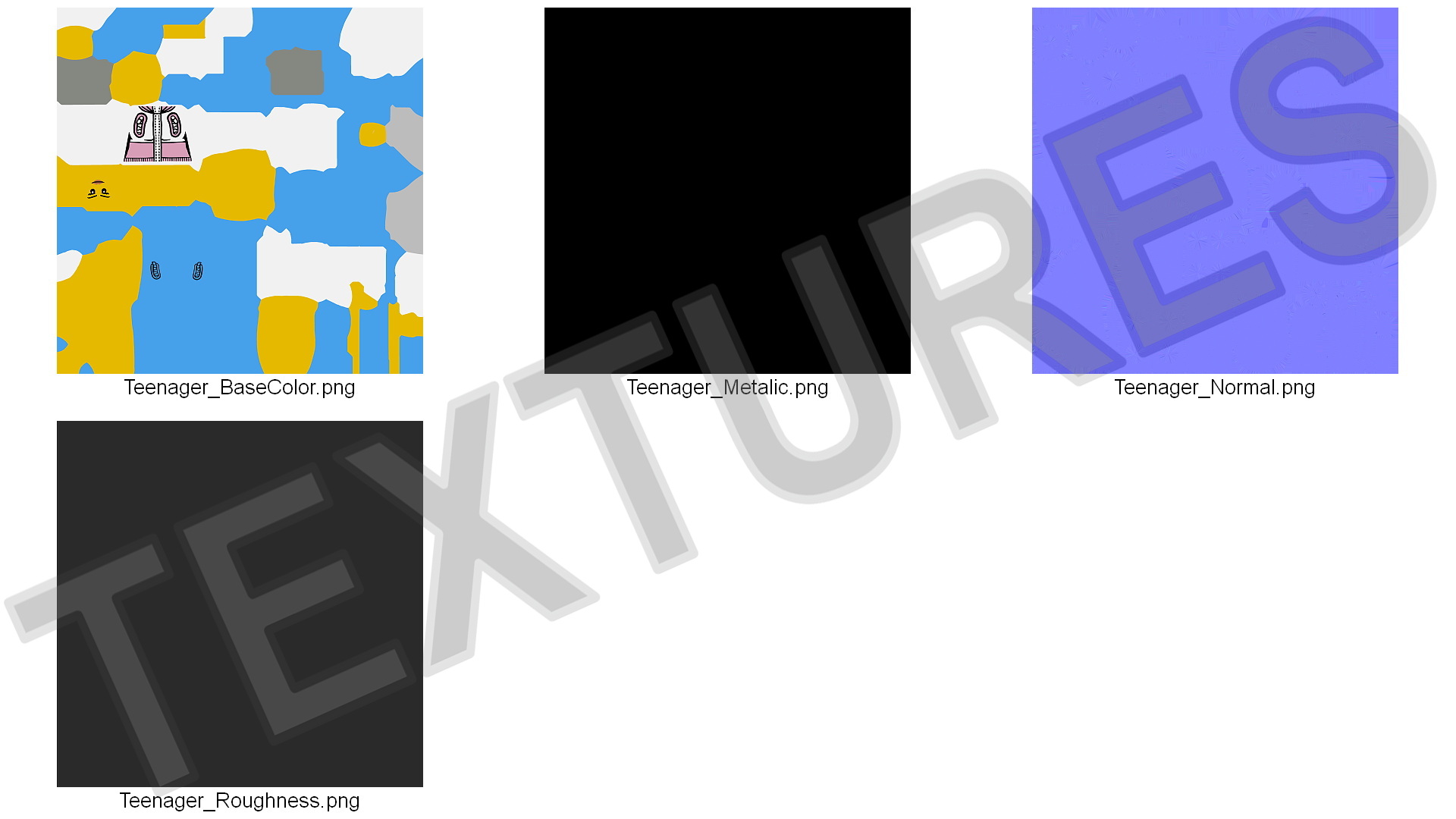 All textures and materials are included and mapped. (All colors can be easily modified.)