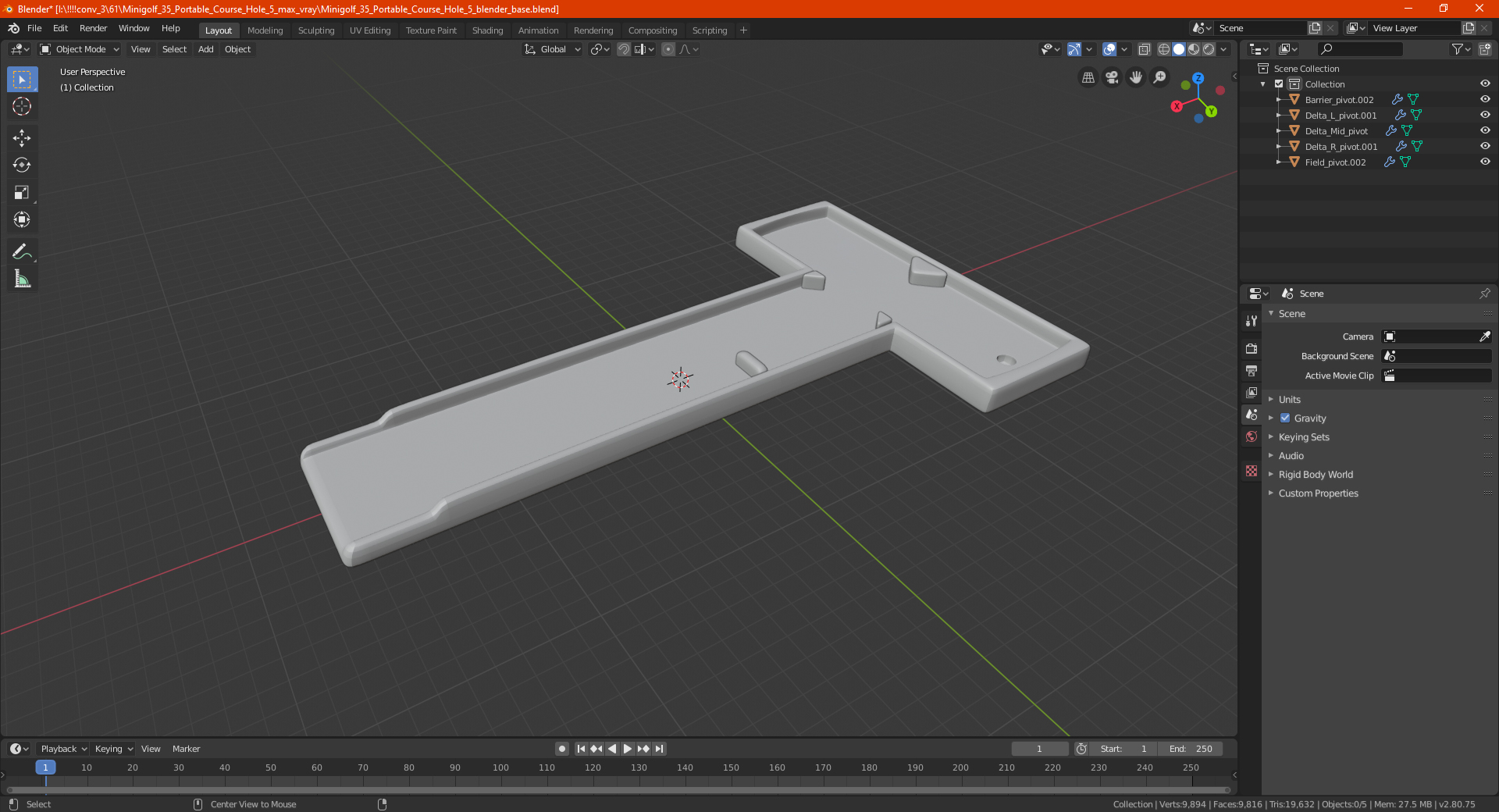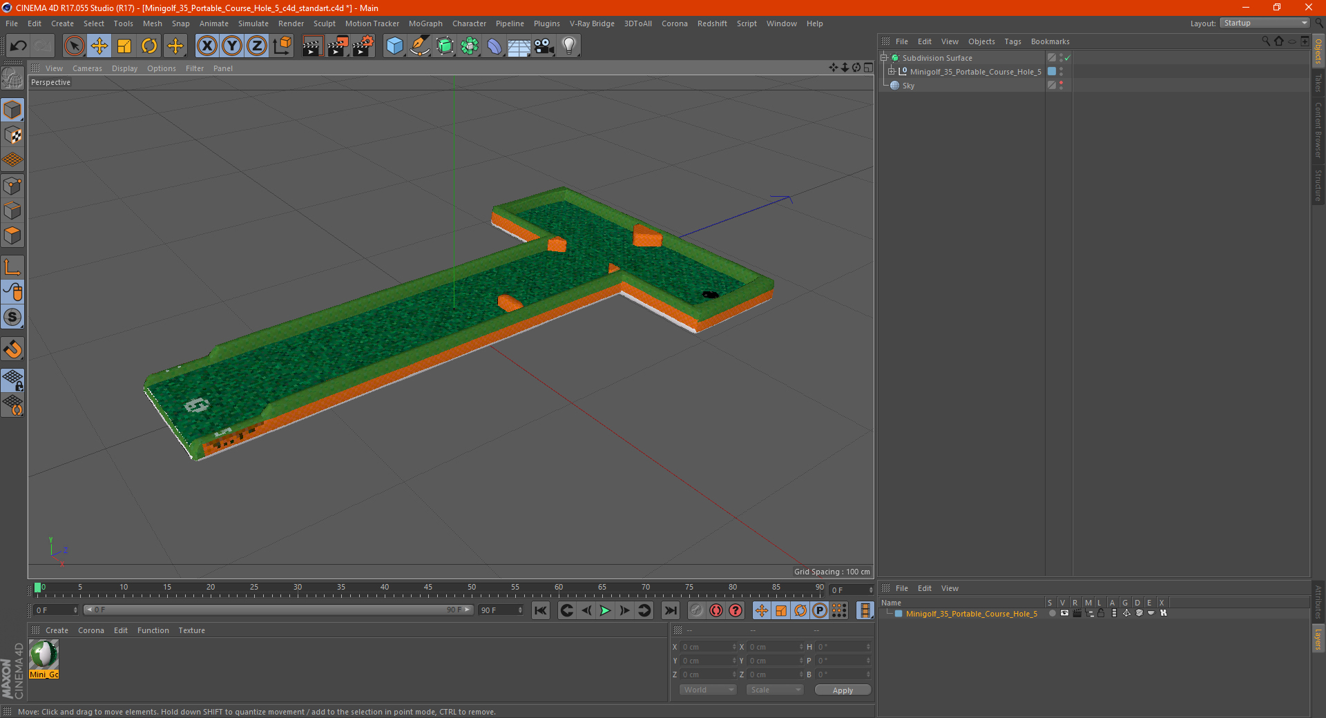 Minigolf 35 Portable Course Hole 5 is a high quality, photo real 3d model that will enhance detail and realism to any of your rendering projects. The model has a fully textured, detailed design that allows for close-up renders, and was originally modeled in 3ds Max 2020 and rendered with V-Ray. Renders have no postprocessing!