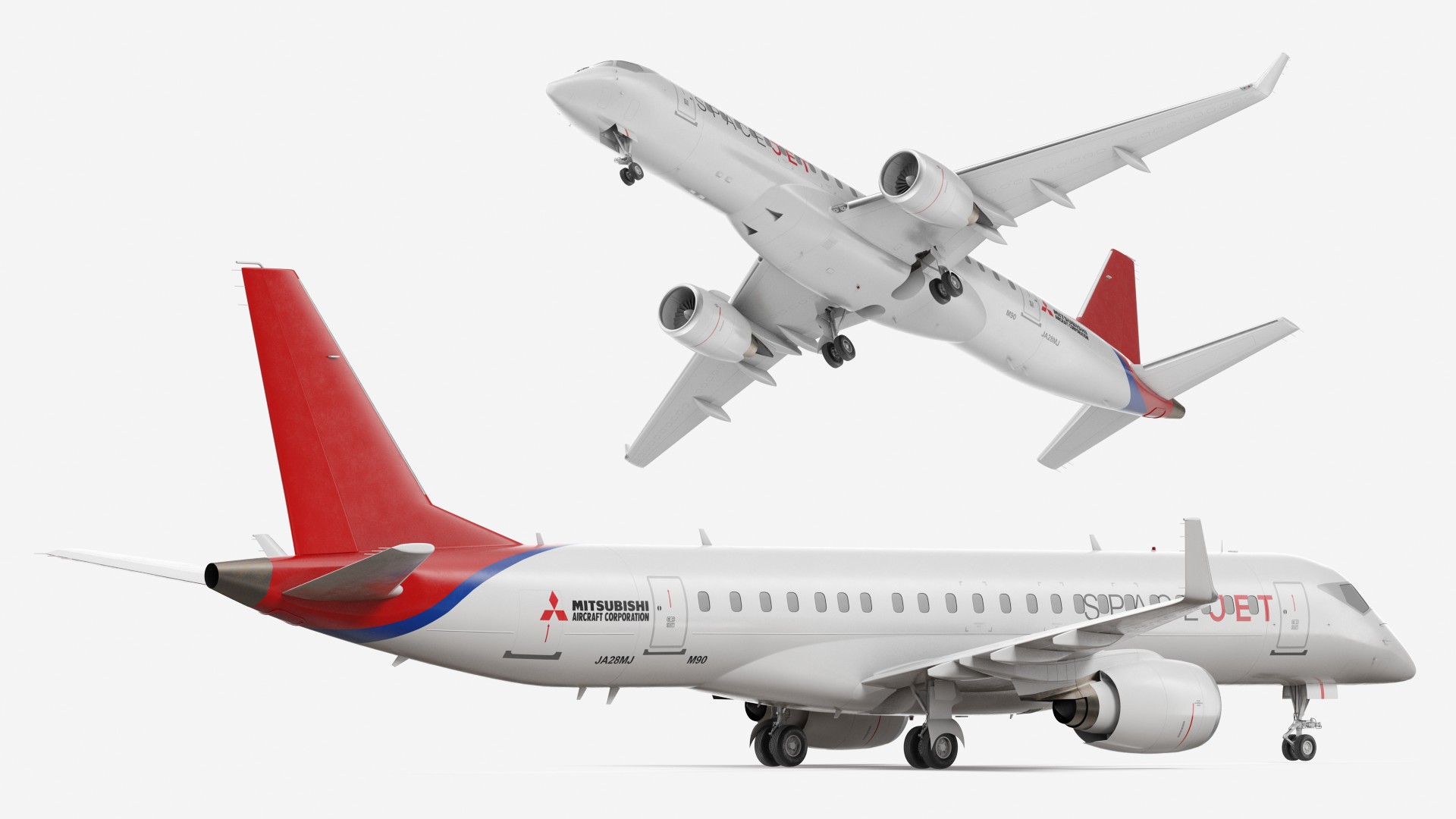 Mitsubishi SpaceJet M90 Exterior Only a regional jet developed by Japanese manufacturer Mitsubishi Aircraft Corporation (MAC), Japan, and manufactured by Mitsubishi Heavy Industries.