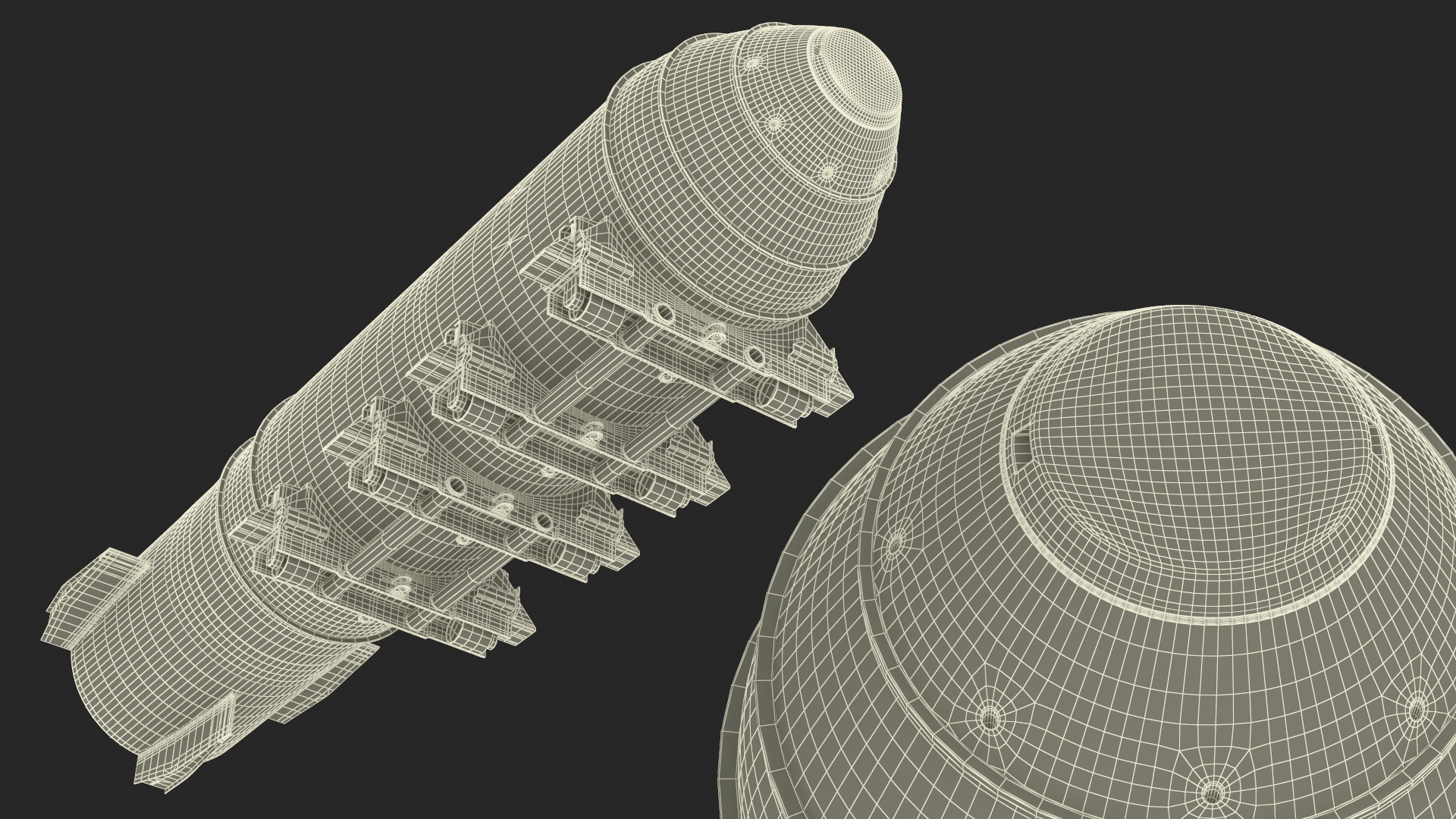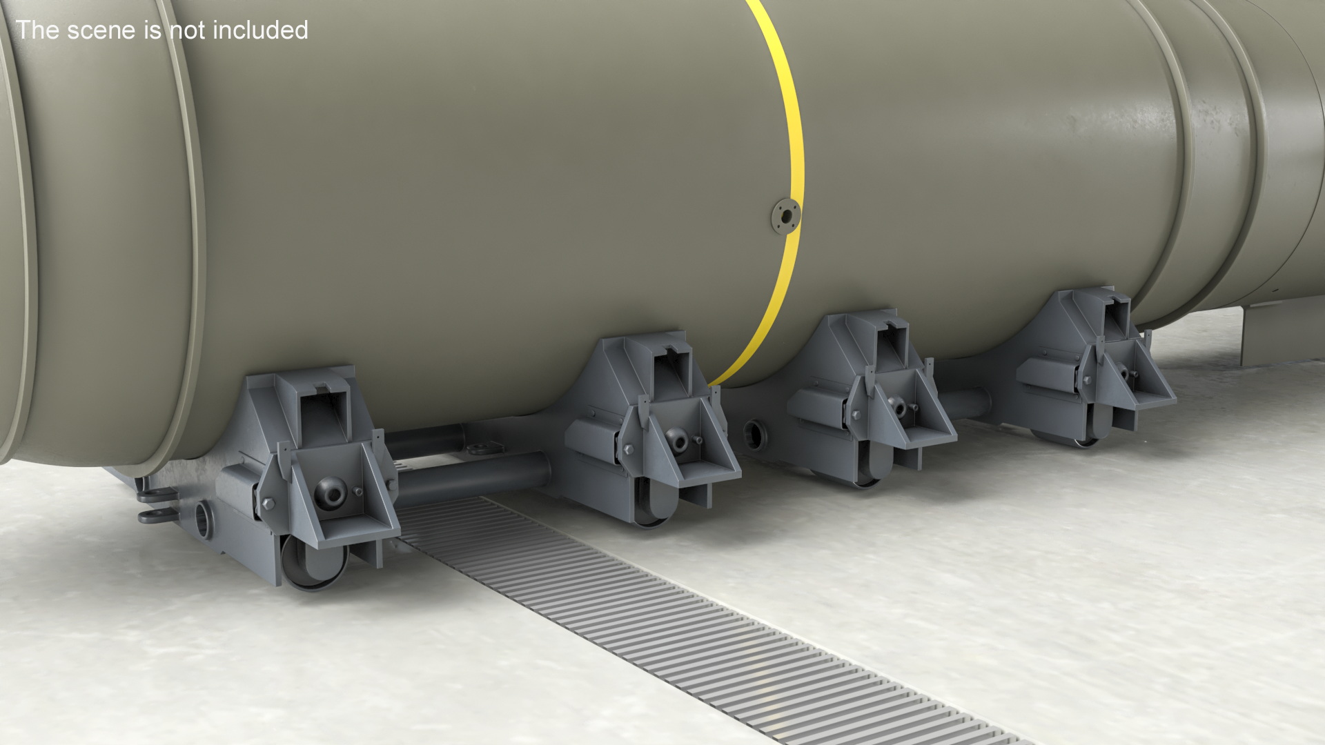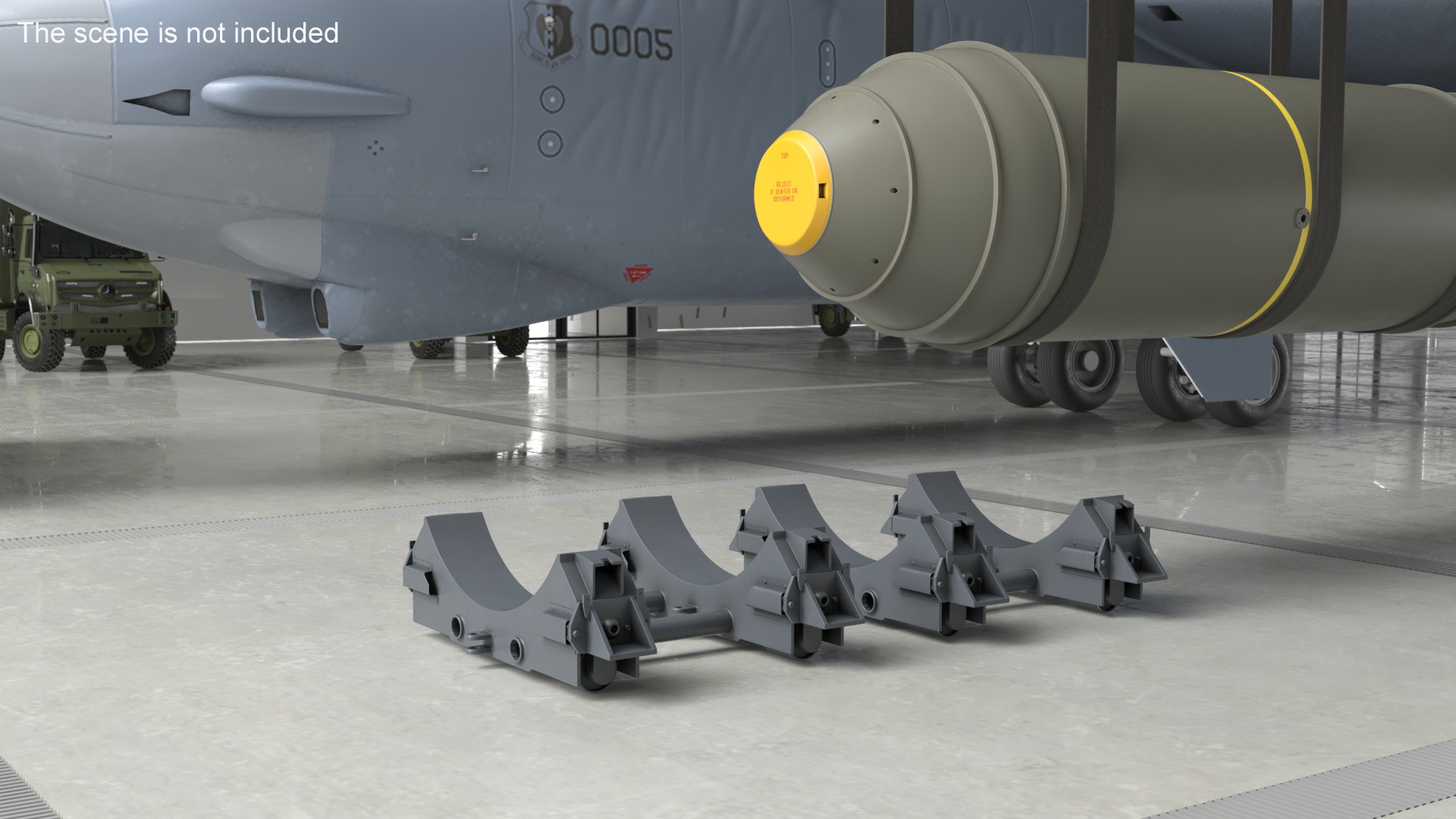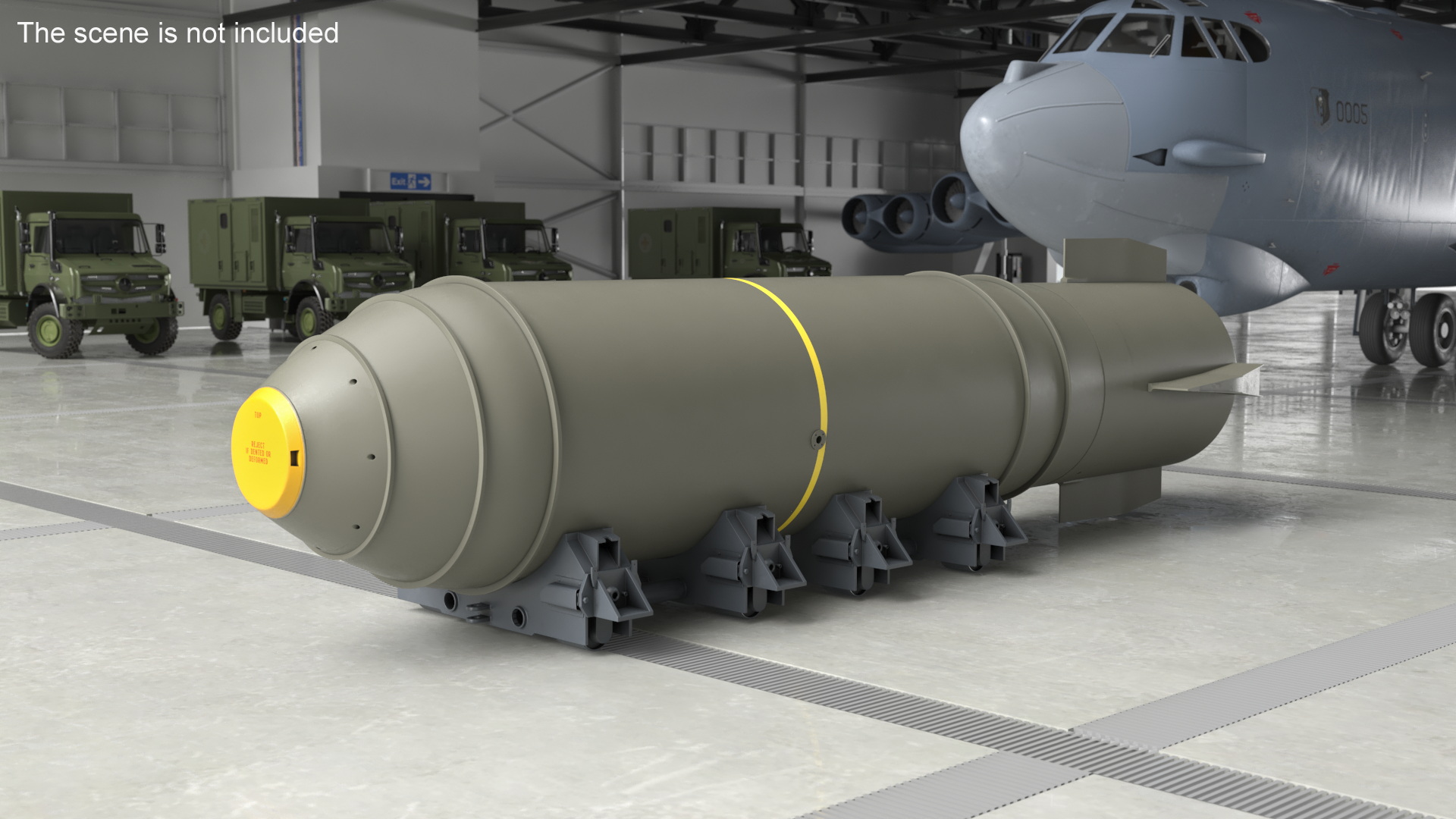 This model provides a detailed representation of the MK-17 bomb, mounted on a robust shipping trolley. The trolley includes heavy-duty wheels for mobility, secure restraints for stability, and a reinforced structure for protection during transport. The bomb is accurately depicted with intricate details, reflecting its advanced design and security features.