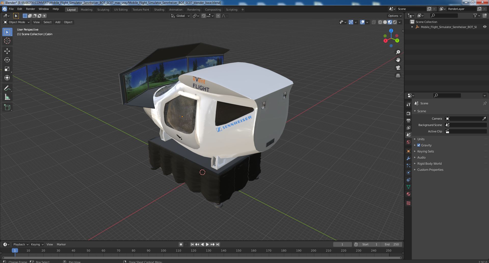 Mobile Flight Simulator Sennheiser BOT SC07 is a high quality, photo real 3d model that will enhance detail and realism to any of your rendering projects. The model has a fully textured, detailed design that allows for close-up renders, and was originally modeled in 3ds Max 2020 and rendered with V-Ray. Renders have no postprocessing!