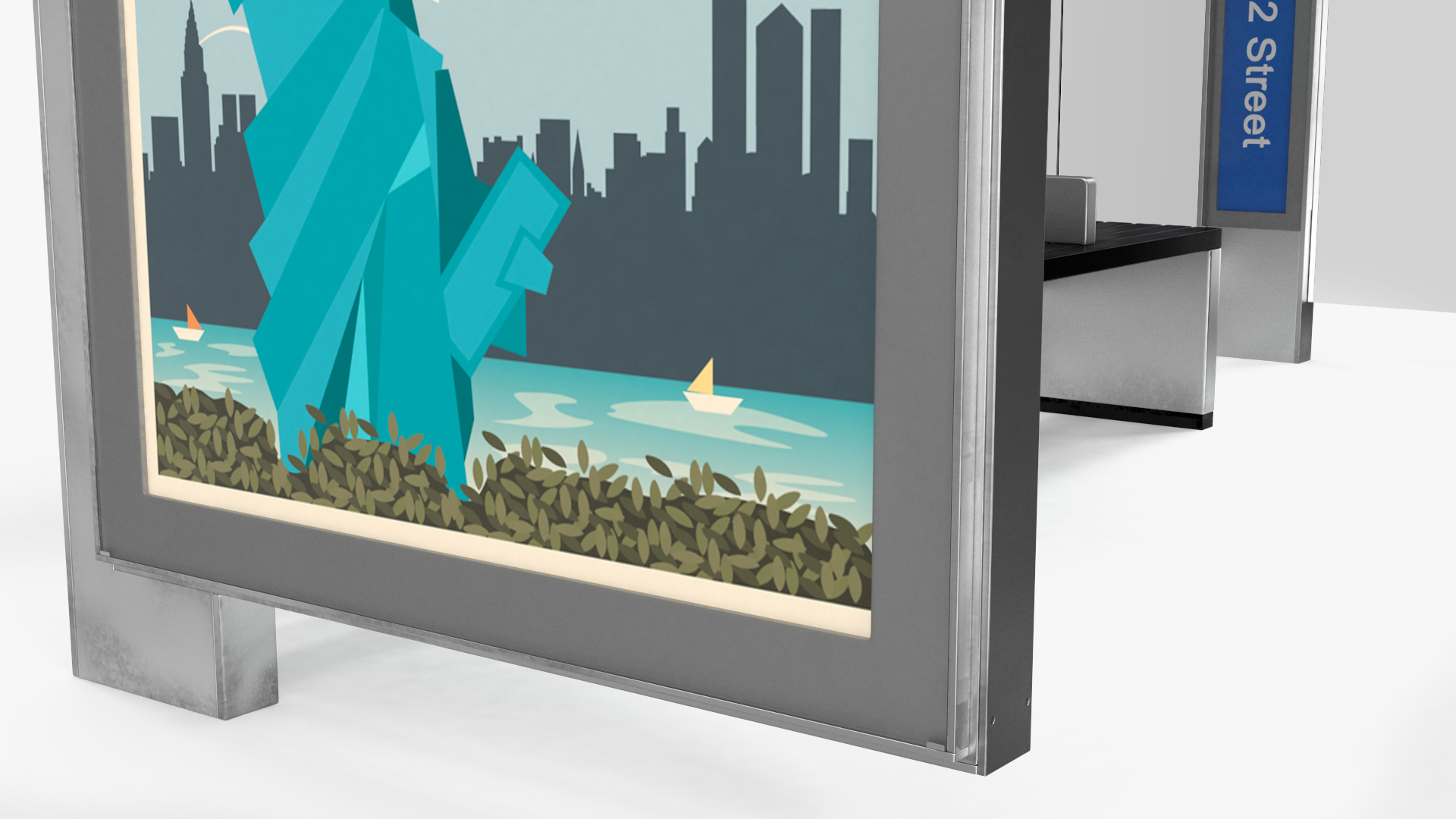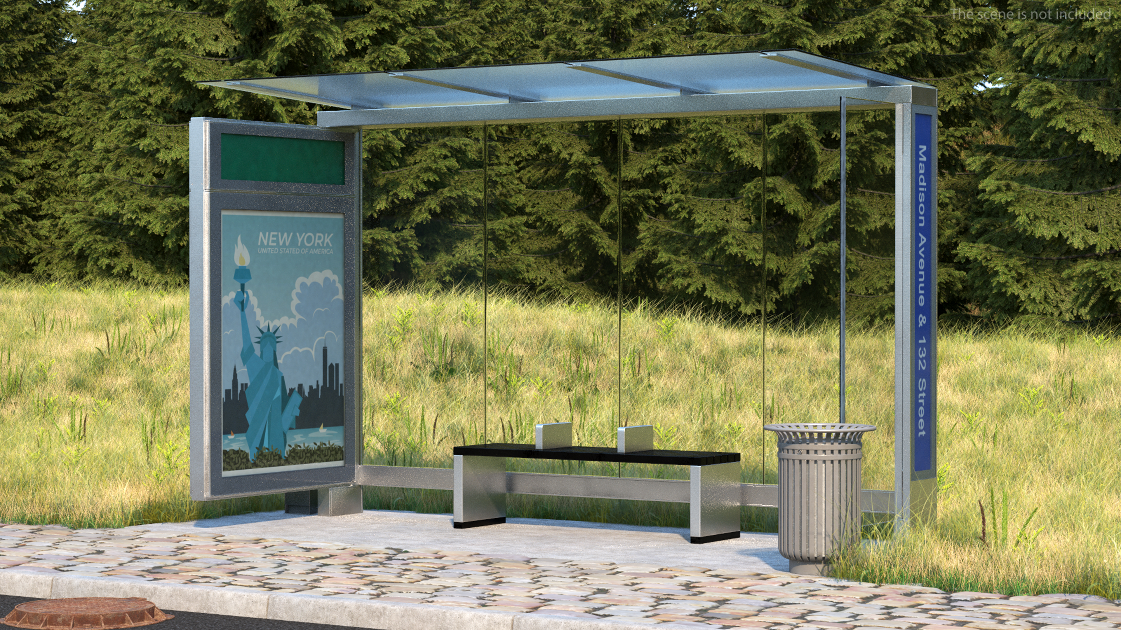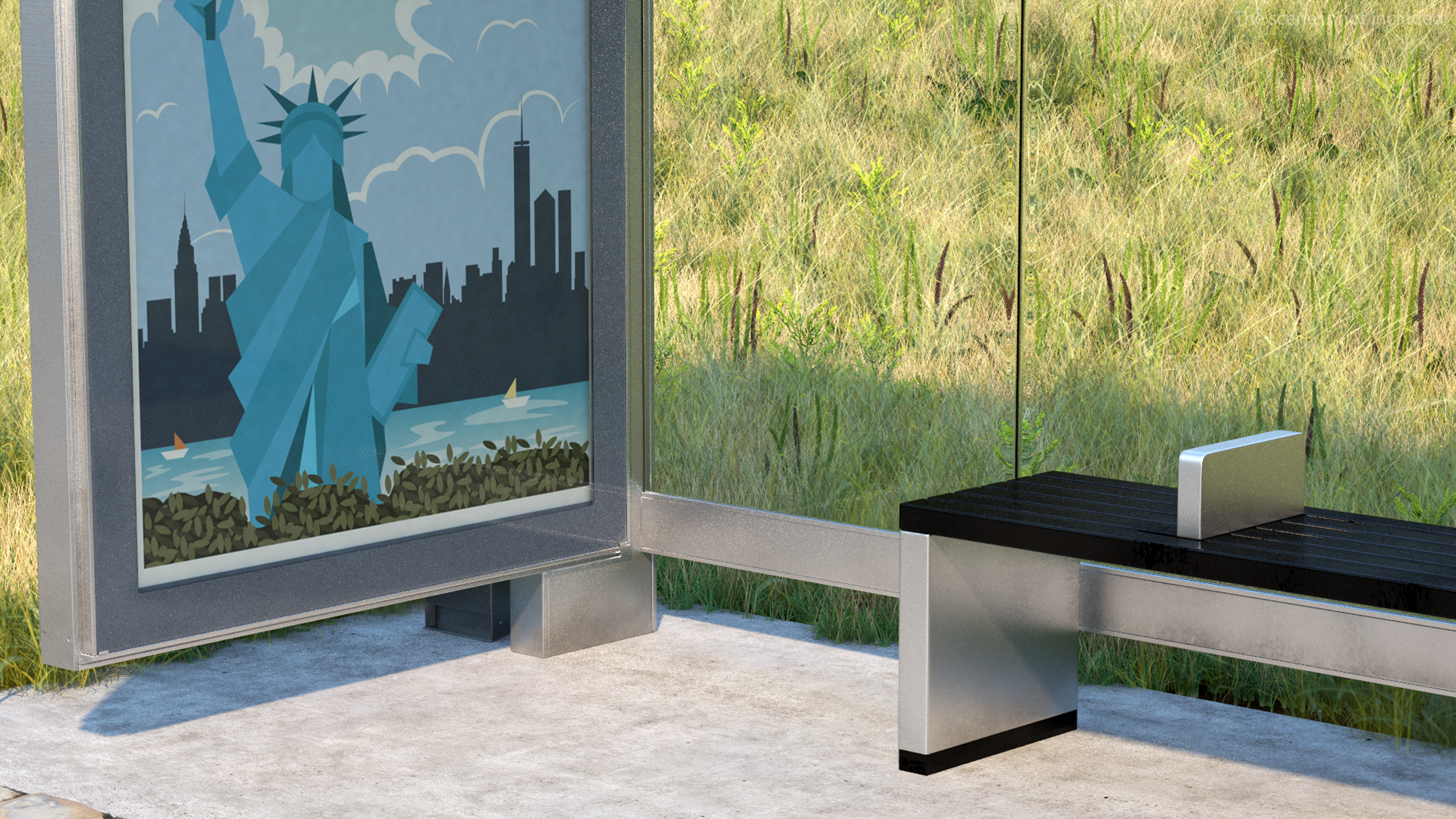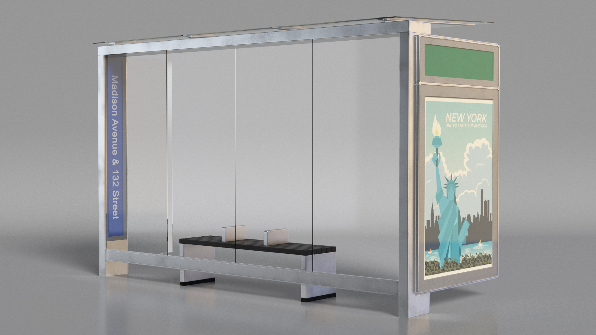 Modern Bus Stop Shelter with Advertisement Panel is a high quality, photo real 3d model that will enhance detail and realism to any of your rendering projects. The model has a fully textured, detailed design that allows for close-up renders, and was originally modeled in 3ds Max 2020 and rendered with V-Ray. Renders have no postprocessing!