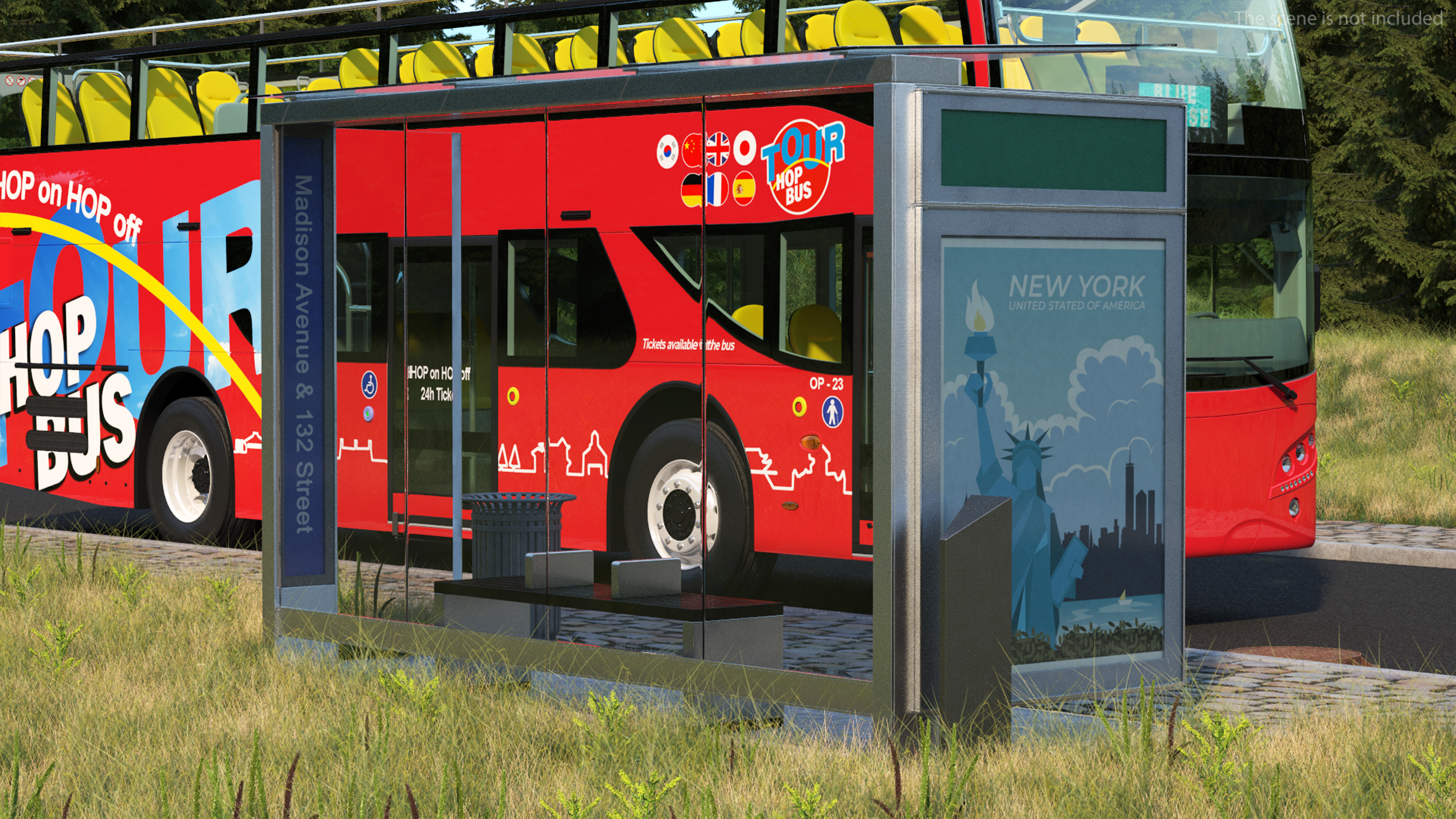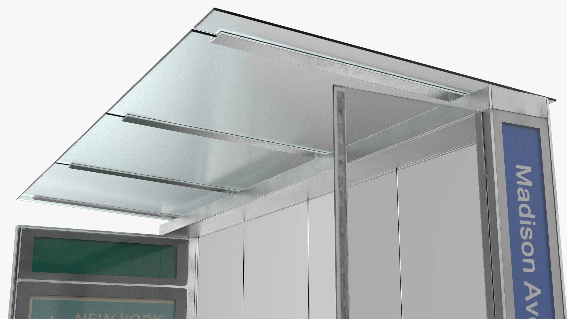 Modern Bus Stop Shelter with Advertisement Panel is a three-dimensional model of bus stop shelter which is a widespread urban bus stop structure, and which is a public bus transportation construction.