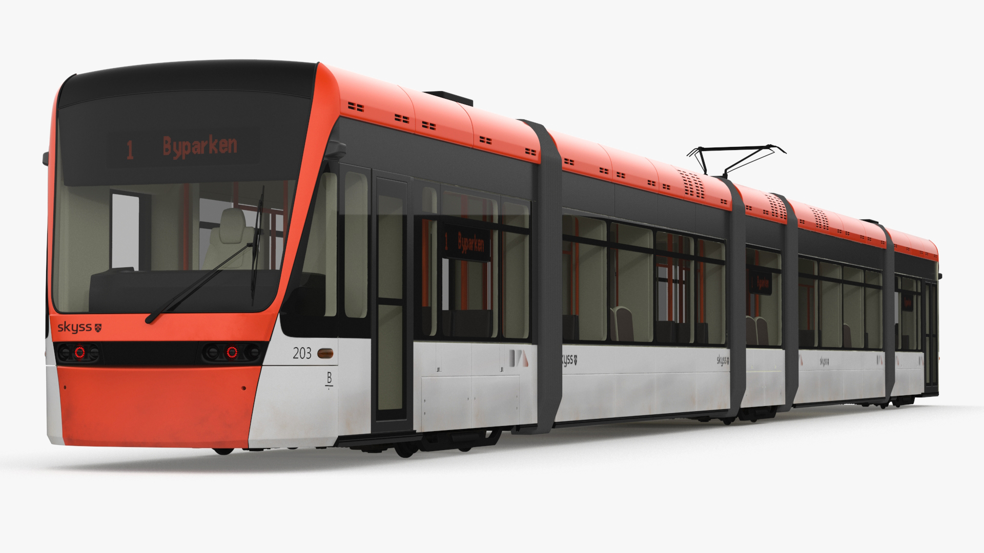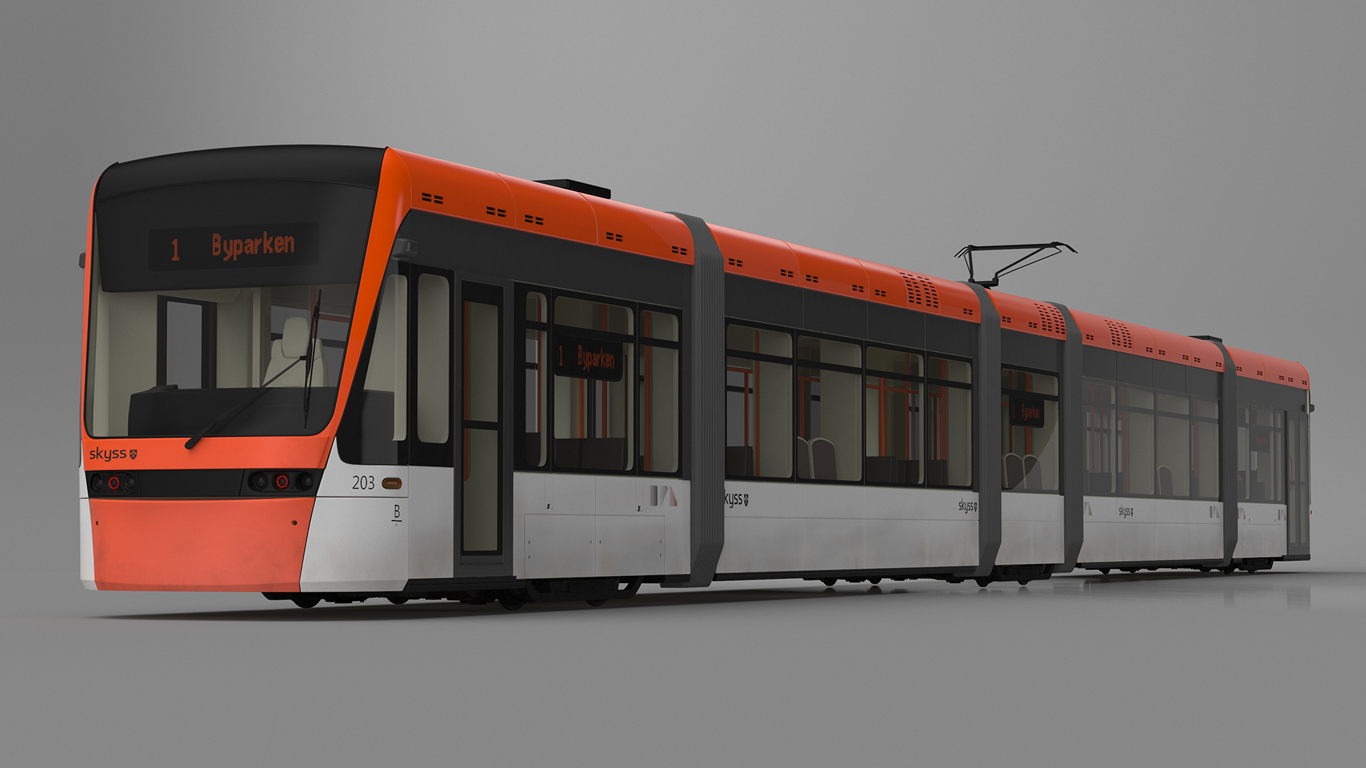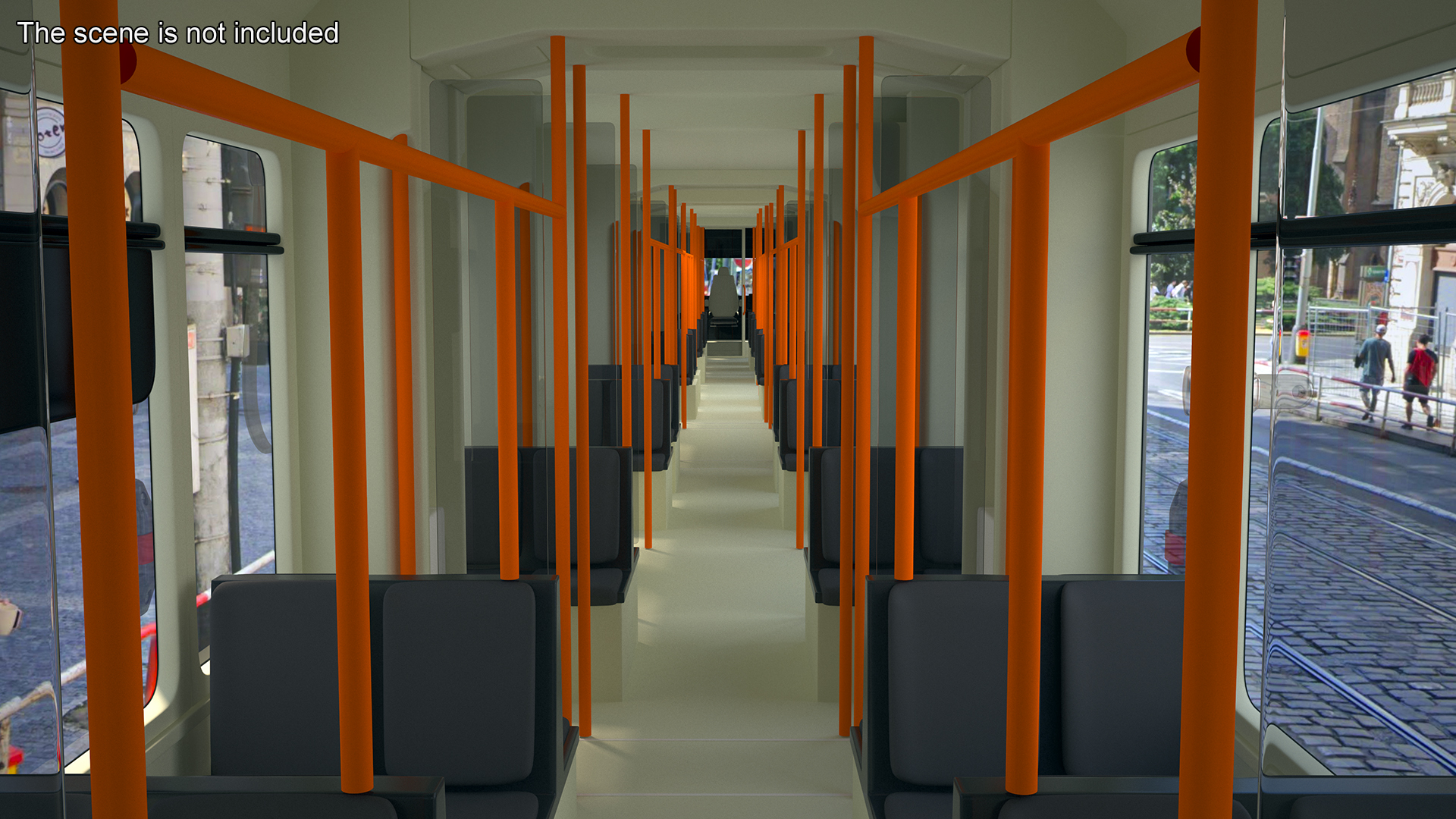 Modern City Tram Bybanen Simple Interior is a three-dimensional model of urban, electrical powered, rail type, urban vehicle that runs on tramway rails.