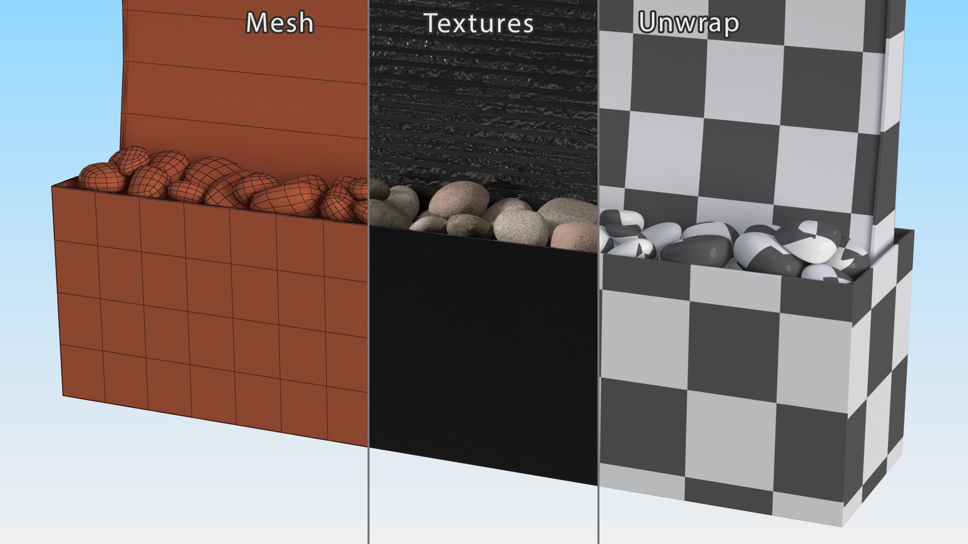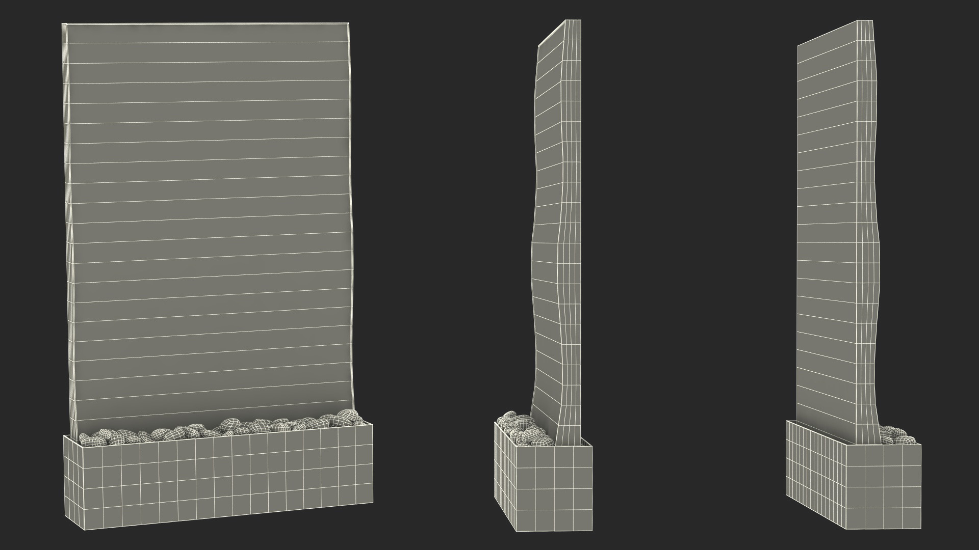 Modern Wall Fountain with Water is a 3D model of indoor type interior decoration which is a decorative wall type fountain (waterfall) with pebbles and lighting.