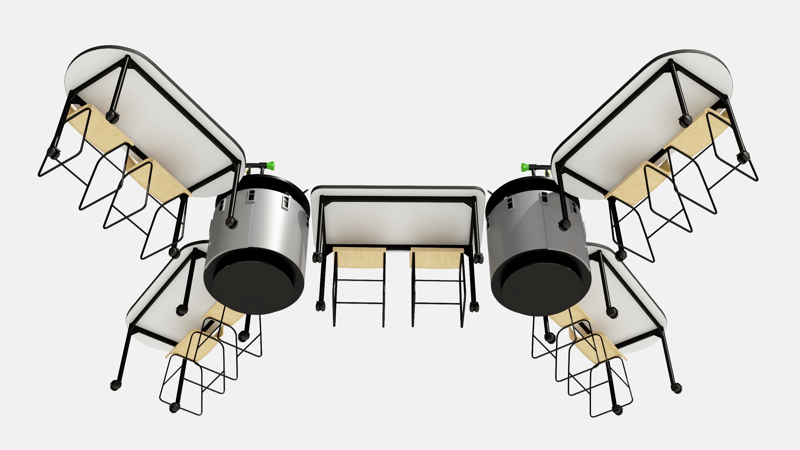 Modular Table Set for Chemistry Classroom is a 3d model of an adaptable table system, designed specifically for educational environments, particularly chemistry laboratories.