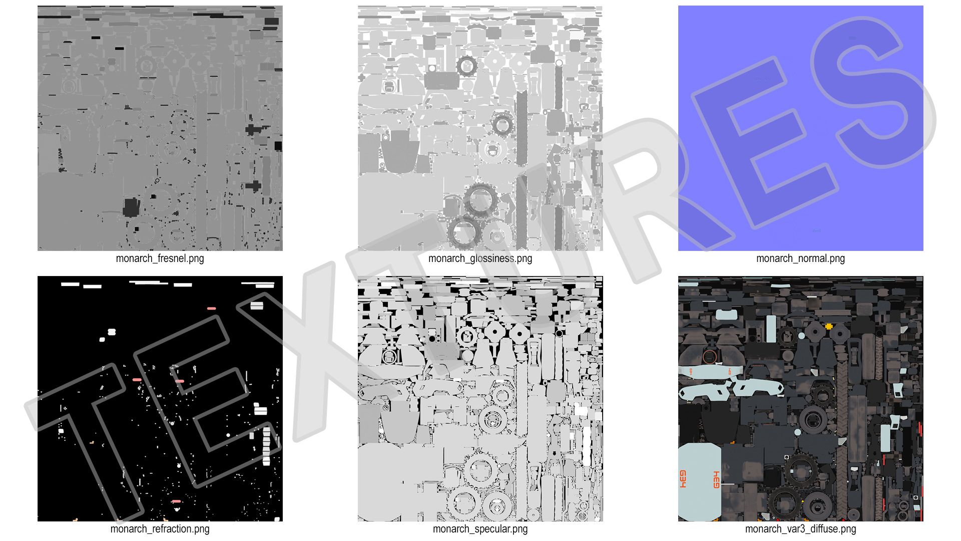 All textures and materials are included and mapped. (All colors can be easily modified.)