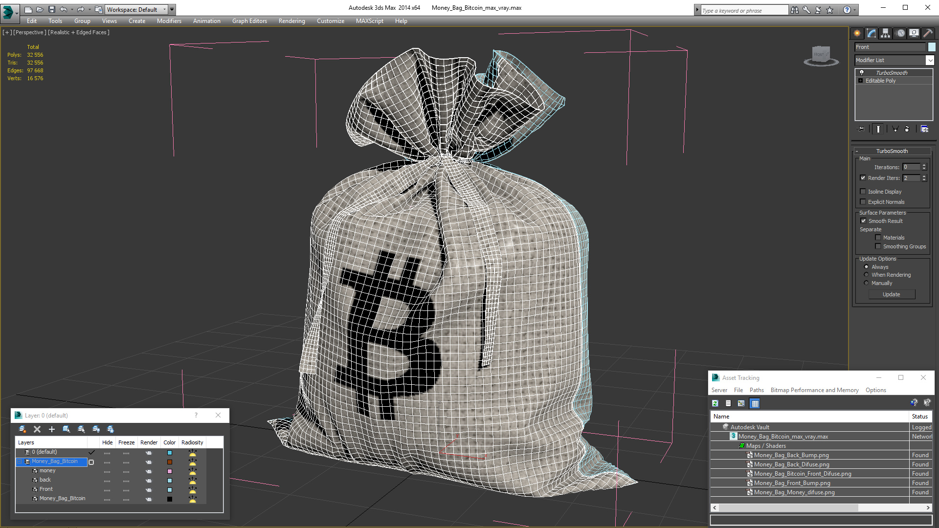 Money Bag Bitcoin is a high quality, photo real 3d model that will enhance detail and realism to any of your rendering projects. The model has a fully textured, detailed design that allows for close-up renders, and was originally modeled in 3ds Max 2020 and rendered with V-Ray. Renders have no postprocessing!