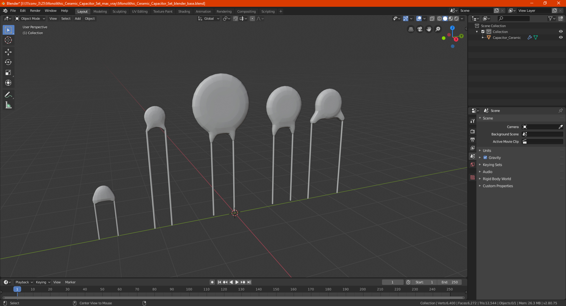 Monolithic Ceramic Capacitor Set is a high quality, photo real 3d model that will enhance detail and realism to any of your rendering projects. The model has a fully textured, detailed design that allows for close-up renders, and was originally modeled in 3ds Max 2020 and rendered with V-Ray. Renders have no postprocessing!