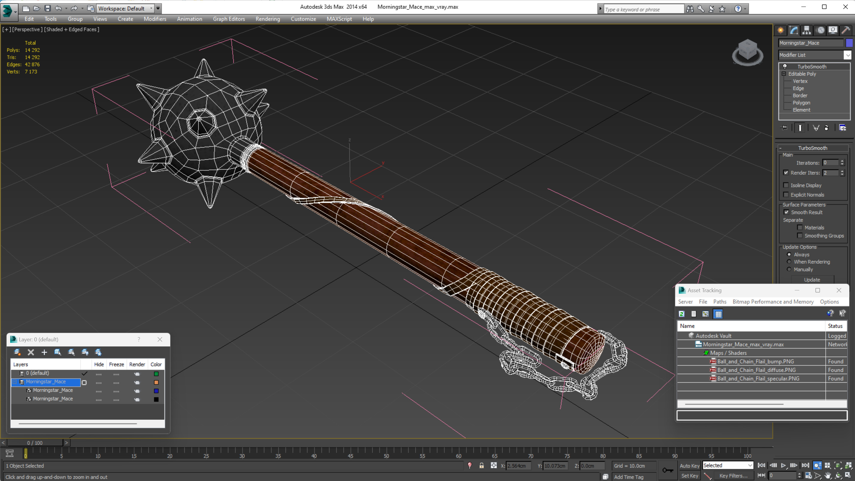 Morningstar Mace is a 3D model of type of medieval mace with metal ball and spikes which was old weapon, which was used during the Middle Ages by knights and soldiers.