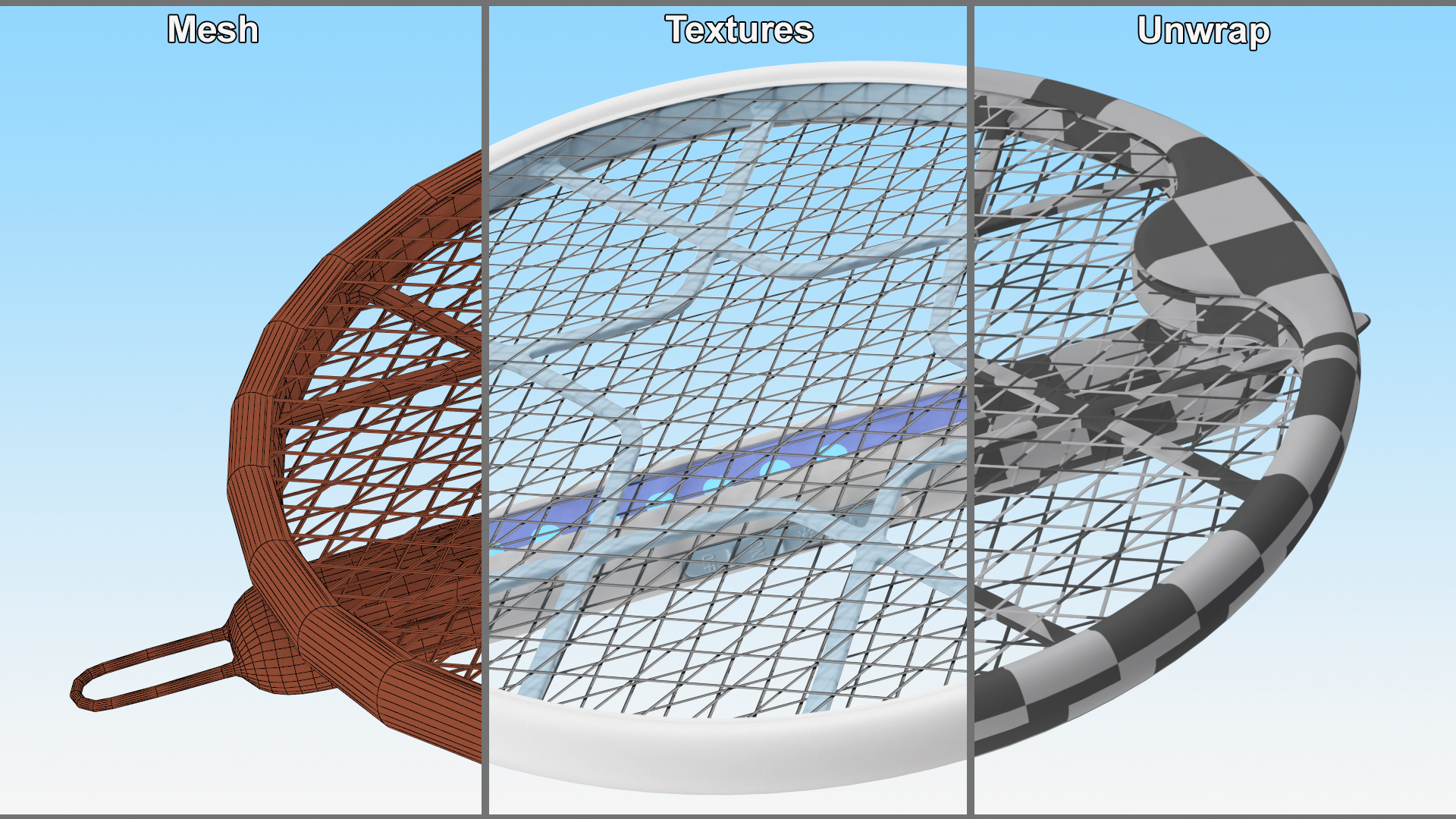 Mosqzap Electric Fly Swatter Folded is a three-dimensional model of folding bug zapper racket which is a special handy tool designed to swiftly eliminate pest insects like flies, fruit flies, mosquitoes, gnats, and other pests.