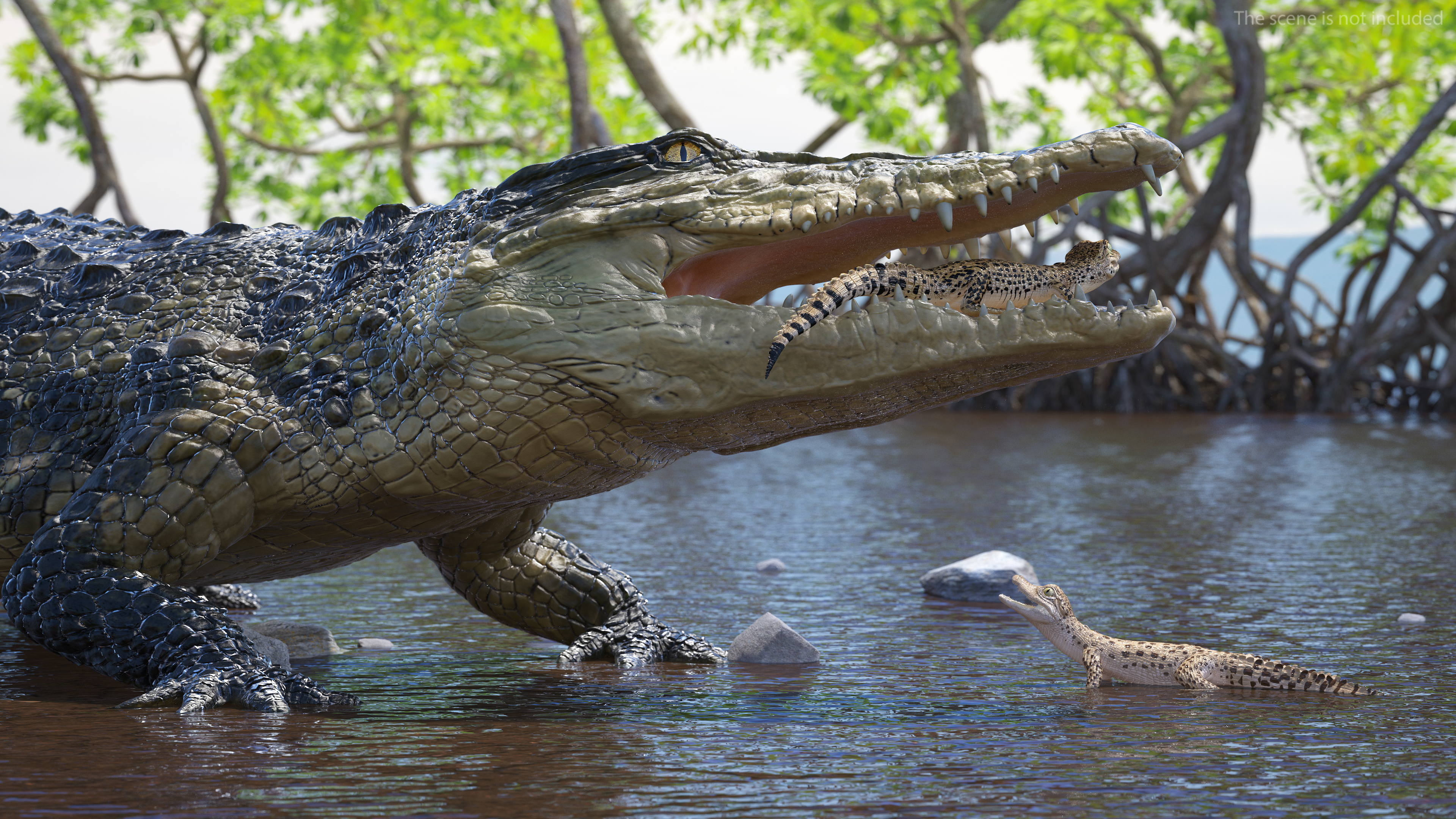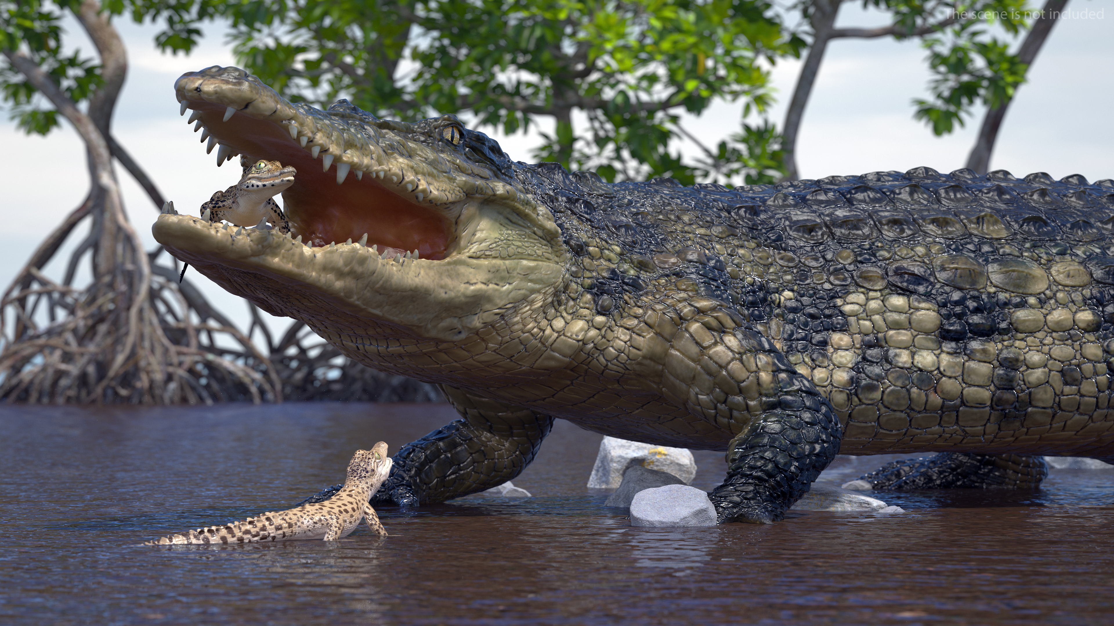 Mother Crocodile Carrying Baby is a high quality, photo real 3d model that will enhance detail and realism to any of your rendering projects. The model has a fully textured, detailed design that allows for close-up renders, and was originally modeled in 3ds Max 2020 and rendered with V-Ray. Renders have no postprocessing!