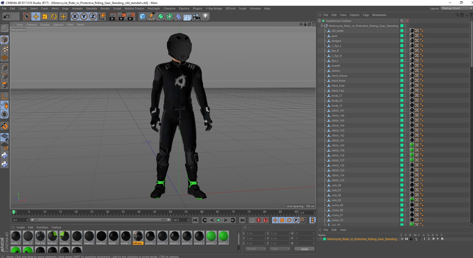Motorcycle Rider in Protective Riding Gear Standing is a high quality, photo real 3d model that will enhance detail and realism to any of your rendering projects. The model has a fully textured, detailed design that allows for close-up renders, and was originally modeled in 3ds Max 2020 and rendered with V-Ray. Renders have no postprocessing!