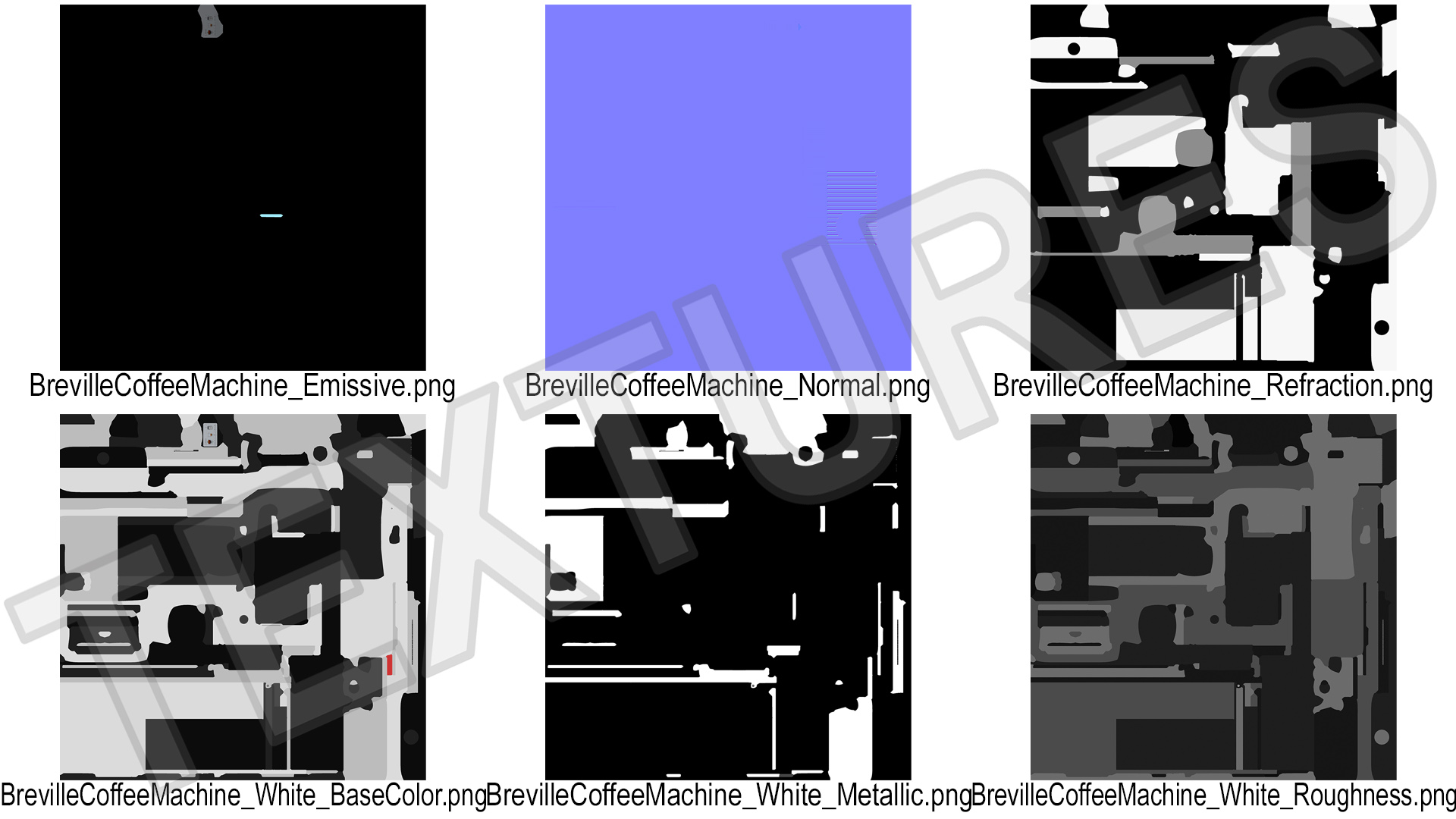 All textures and materials are included and mapped. (All colors can be easily modified.)