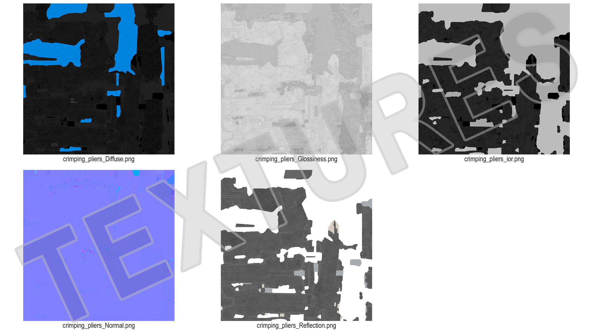 All textures and materials are included and mapped. (All colors can be easily modified.)