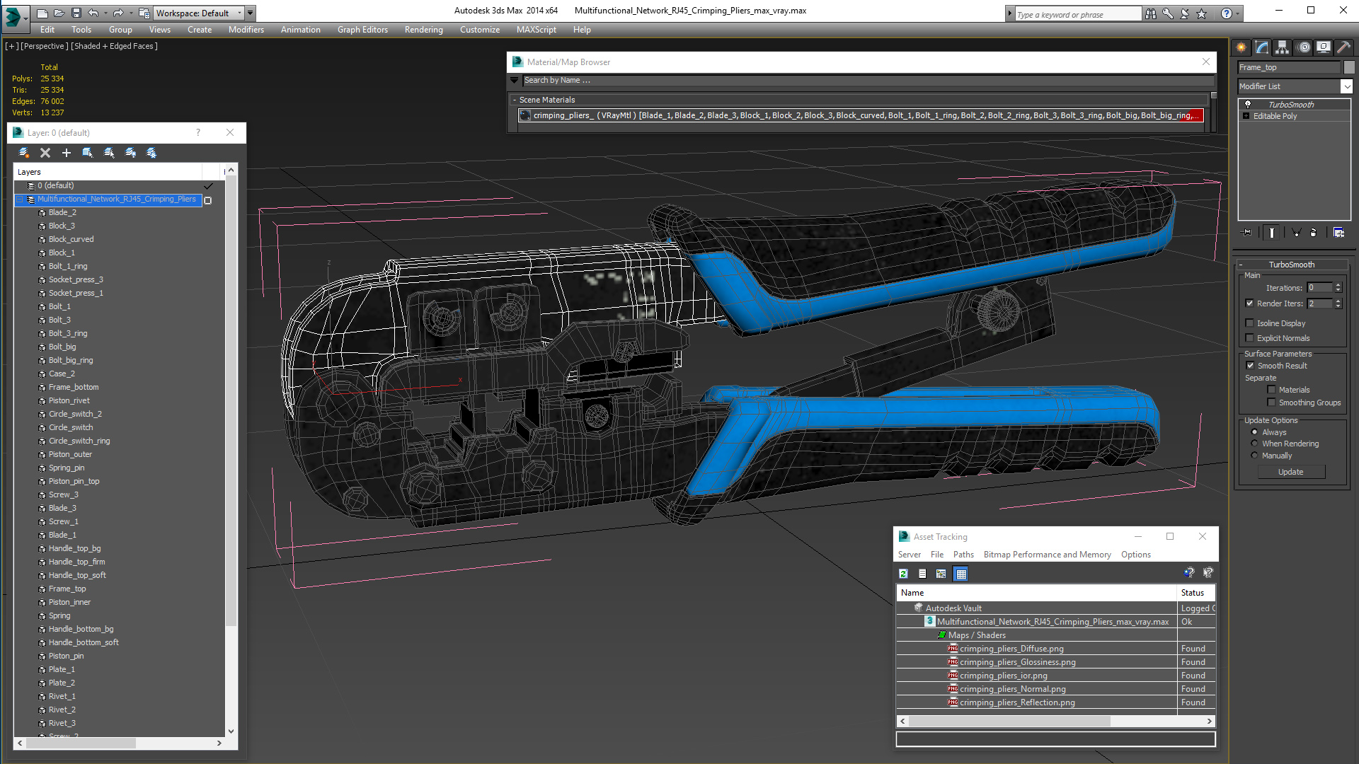 Multifunctional Network RJ45 Crimping Pliers is a high quality, photo real 3d model that will enhance detail and realism to any of your rendering projects. The model has a fully textured, detailed design that allows for close-up renders, and was originally modeled in 3ds Max 2020 and rendered with V-Ray. Renders have no postprocessing!