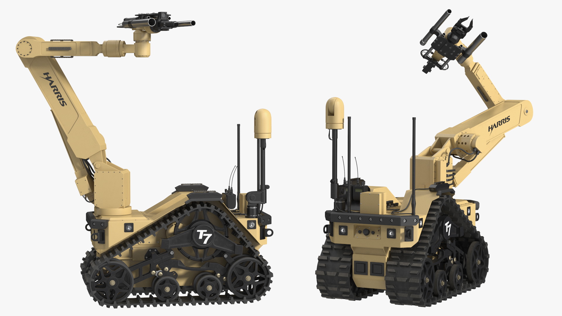 Multifunctional Robotic System Harris T7 Rigged is a 3d model of robot intended for use by the soldiers in EOD missions, including detection, identification, recovery and disposal of explosive ordnance and improvised explosive devices (IEDs).