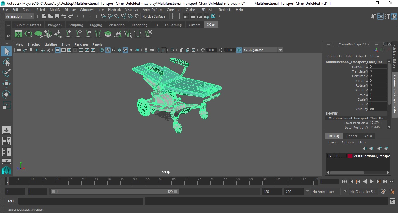 Multifunctional Transport Chair Unfolded is a high quality, photo real 3d model that will enhance detail and realism to any of your rendering projects. The model has a fully textured, detailed design that allows for close-up renders, and was originally modeled in 3ds Max 2020 and rendered with V-Ray. Renders have no postprocessing!