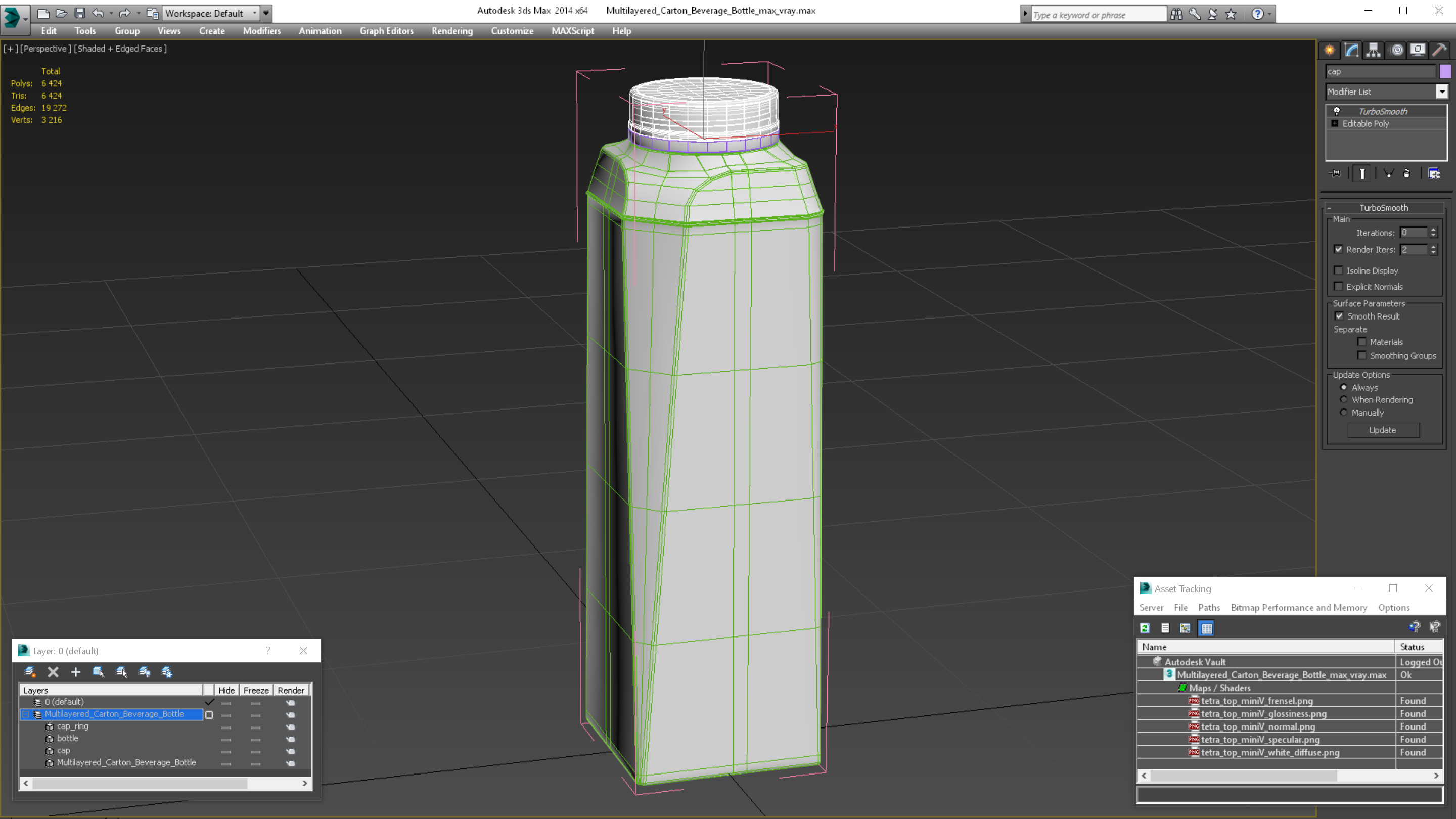 Multilayered Carton Beverage Bottle is a high quality, photo real 3d model that will enhance detail and realism to any of your rendering projects. The model has a fully textured, detailed design that allows for close-up renders, and was originally modeled in 3ds Max 2020 and rendered with V-Ray. Renders have no postprocessing!